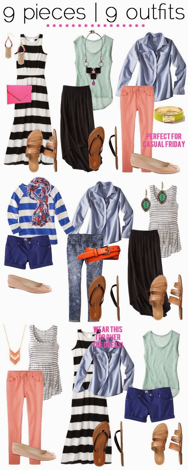 I want to go shopping so bad. I haven’t really bought any new clothes since I had Jack and before then I wasn’t buying anything that I couldn’t wear while pregnant. I got a nice little bonus at work so I’m thinking I need to add some new items to my wardrobe. Until then, I might try to re-create some new looks with what I’ve already got. I love this idea of taking 9 things and making 9 different outfits!