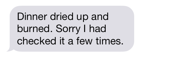 Last week I placed the ingredients for my trusty chicken tacos in the crockpot and was beyond excited to have a delicious meal ready when I got home from work. Then I got this text from J.