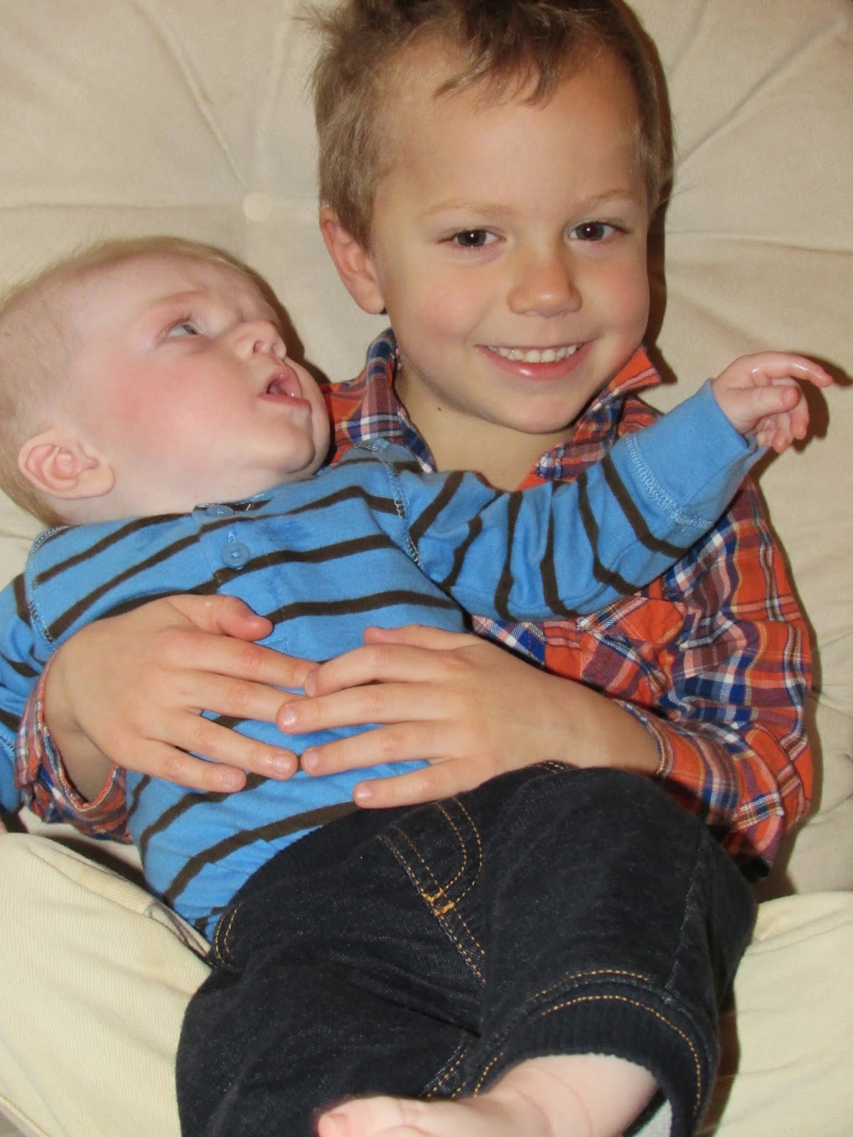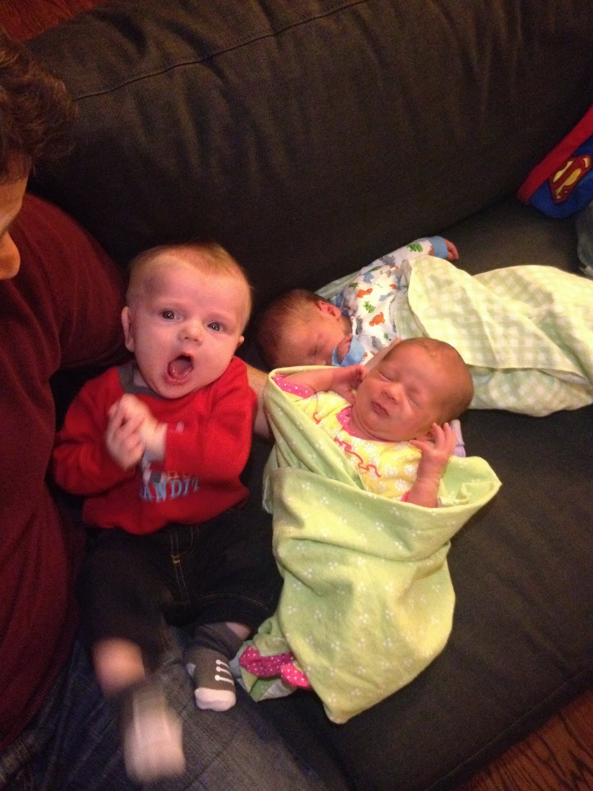 With 3 babies, all of whom can’t sit by themselves, this is the best picture we were gonna get. At least none of them fell off the couch.