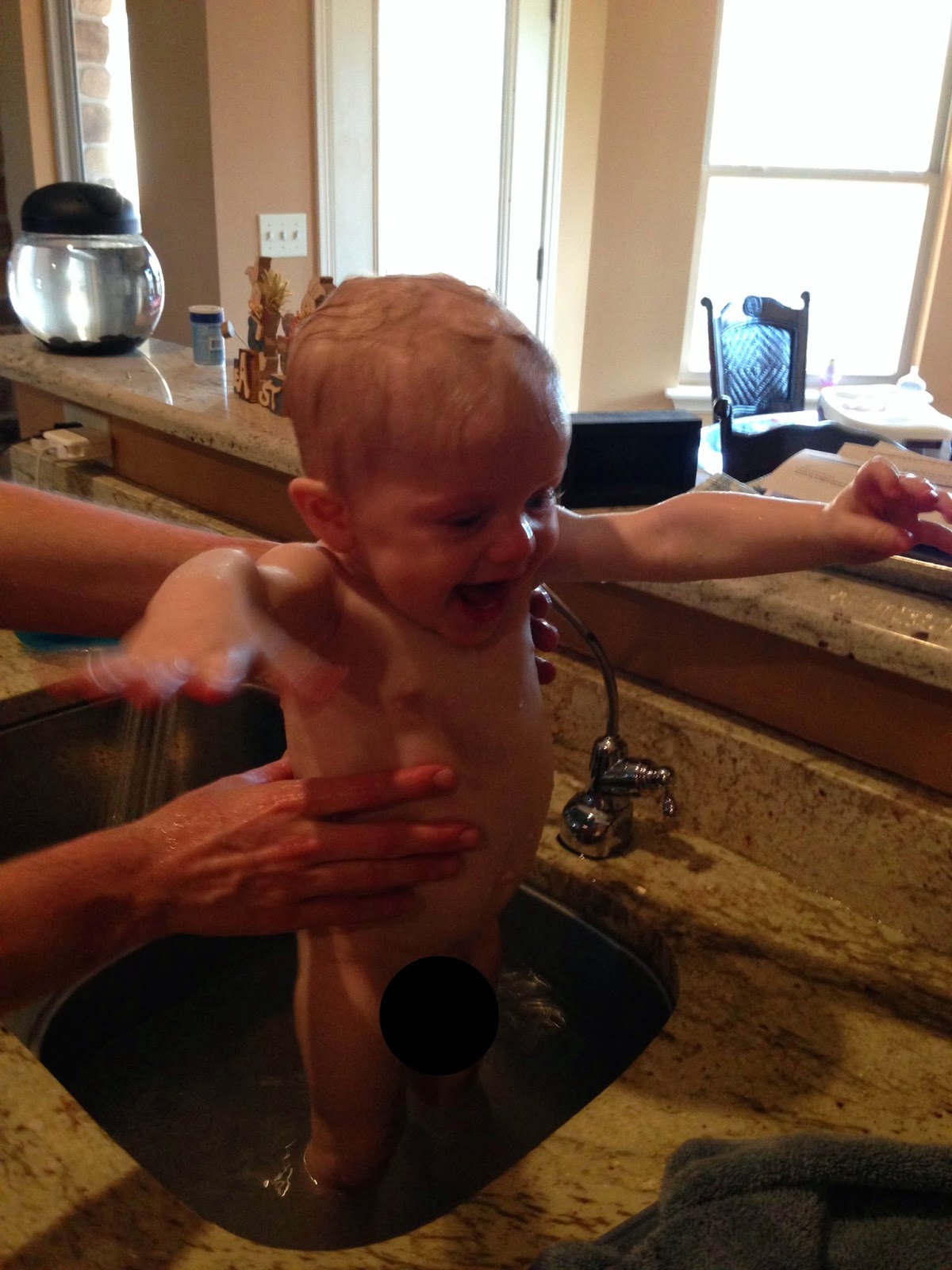 When momma’s out of town for work, the baby gets a bath in the sink. By the look on his face Jack thought it was the best thing ever.