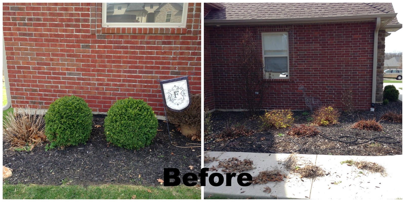 Easter weekend we pulled up all the weeds and dead leaves in our flower beds and put new mulch down. The project ended up taking waayy longer than expected and more mulch than we imagined (20 bags total). It was well worth it though and now that everything is starting to sprout it looks so much better.
