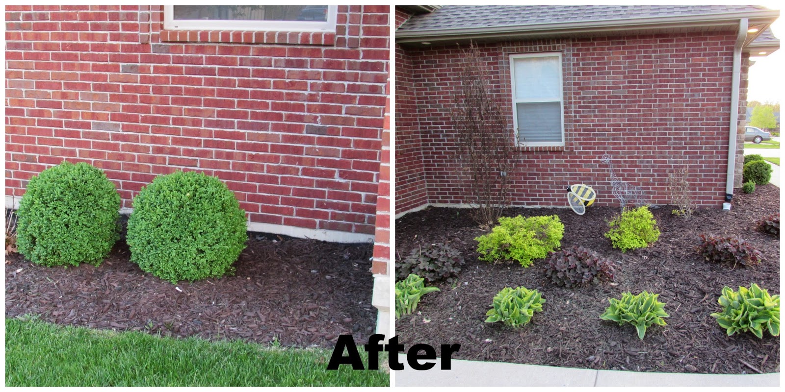 Easter weekend we pulled up all the weeds and dead leaves in our flower beds and put new mulch down. The project ended up taking waayy longer than expected and more mulch than we imagined (20 bags total). It was well worth it though and now that everything is starting to sprout it looks so much better.