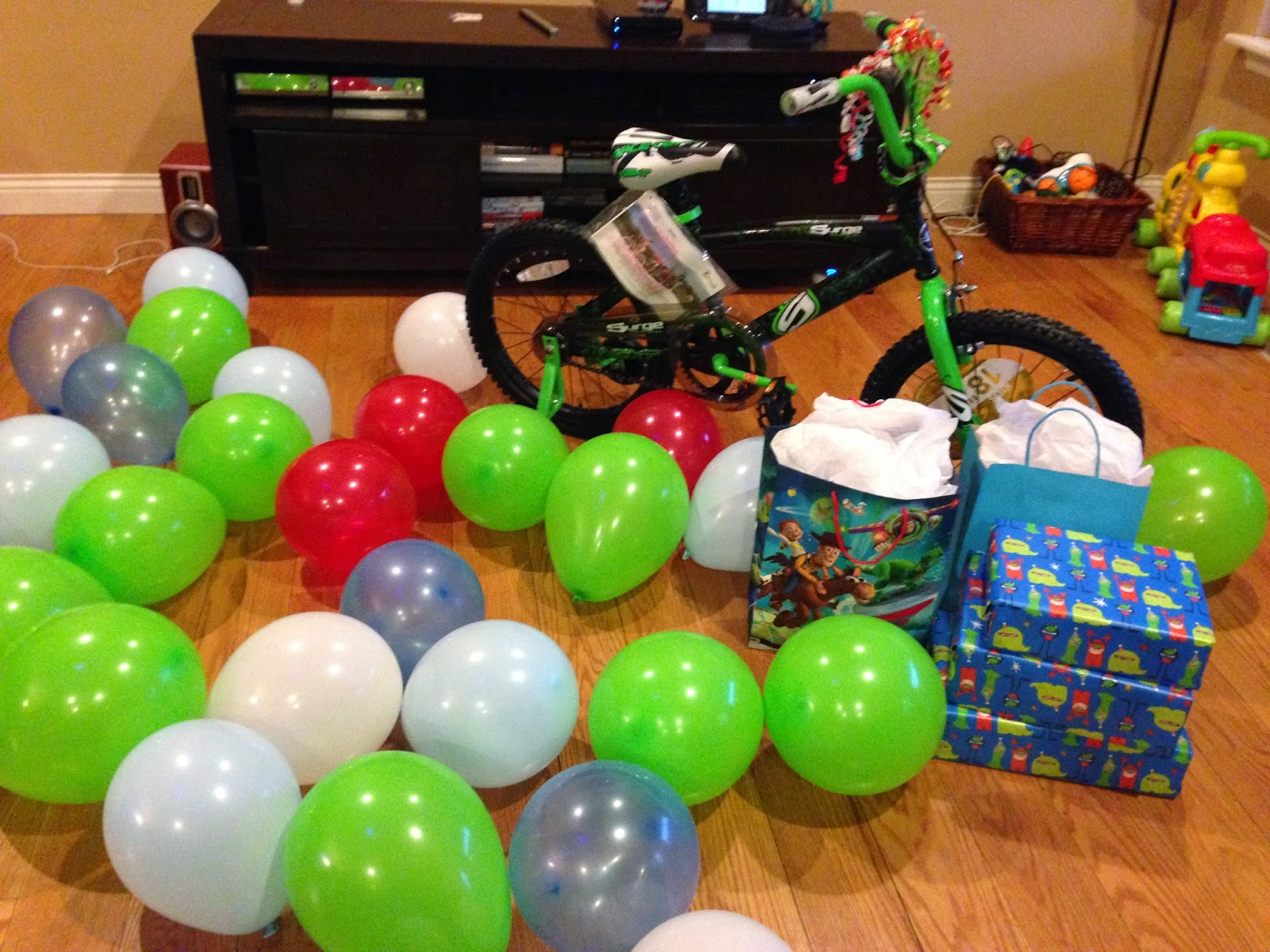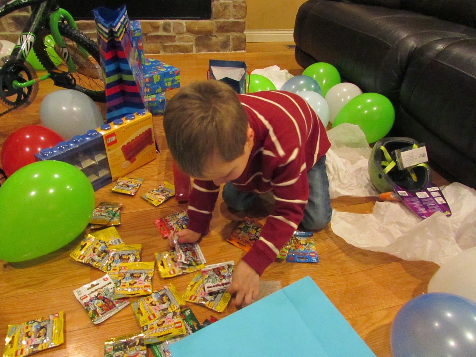 After dinner he opened his presents from us. He was so excited about the Lego mini figures and could care less about his new bike and helmet.