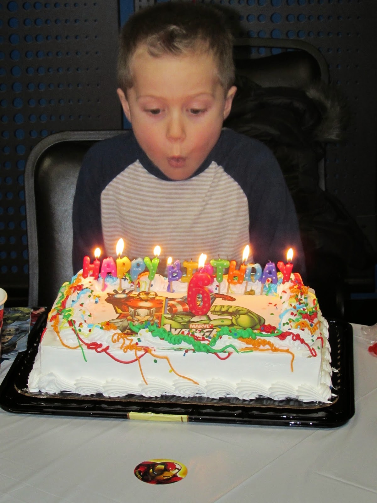 Due to poor planning on my end, I got a very tiny cake at the last minute from Hy-Vee and they were able to slap an Avenger pic on it.