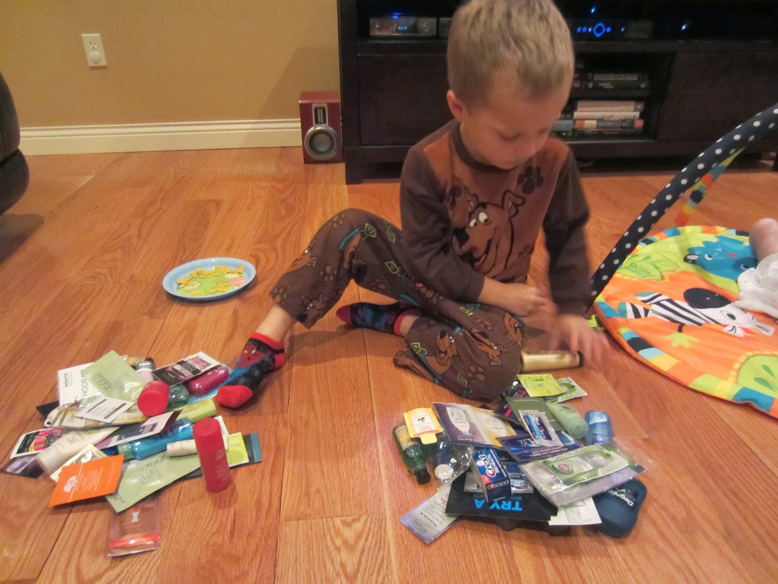 I had a huge tub of samples and travel size toiletries that were just taking up space under the sink so we used these but you could also purchase travel size items from the store.