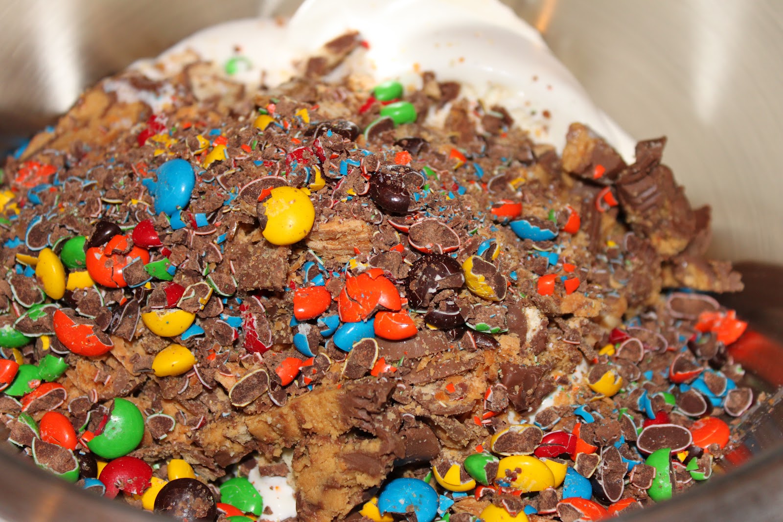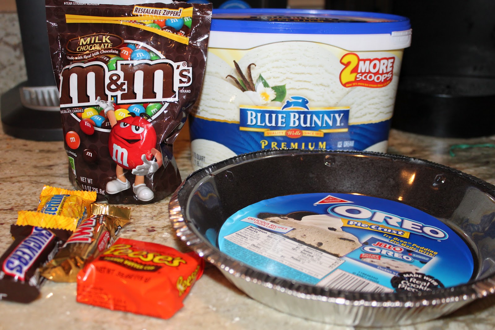 -4 to 5 different varieties of candy. Use whatever you like. I used about 4 of the snack size of each candy (M&Ms, Butterfinger, Snickers, Twix)