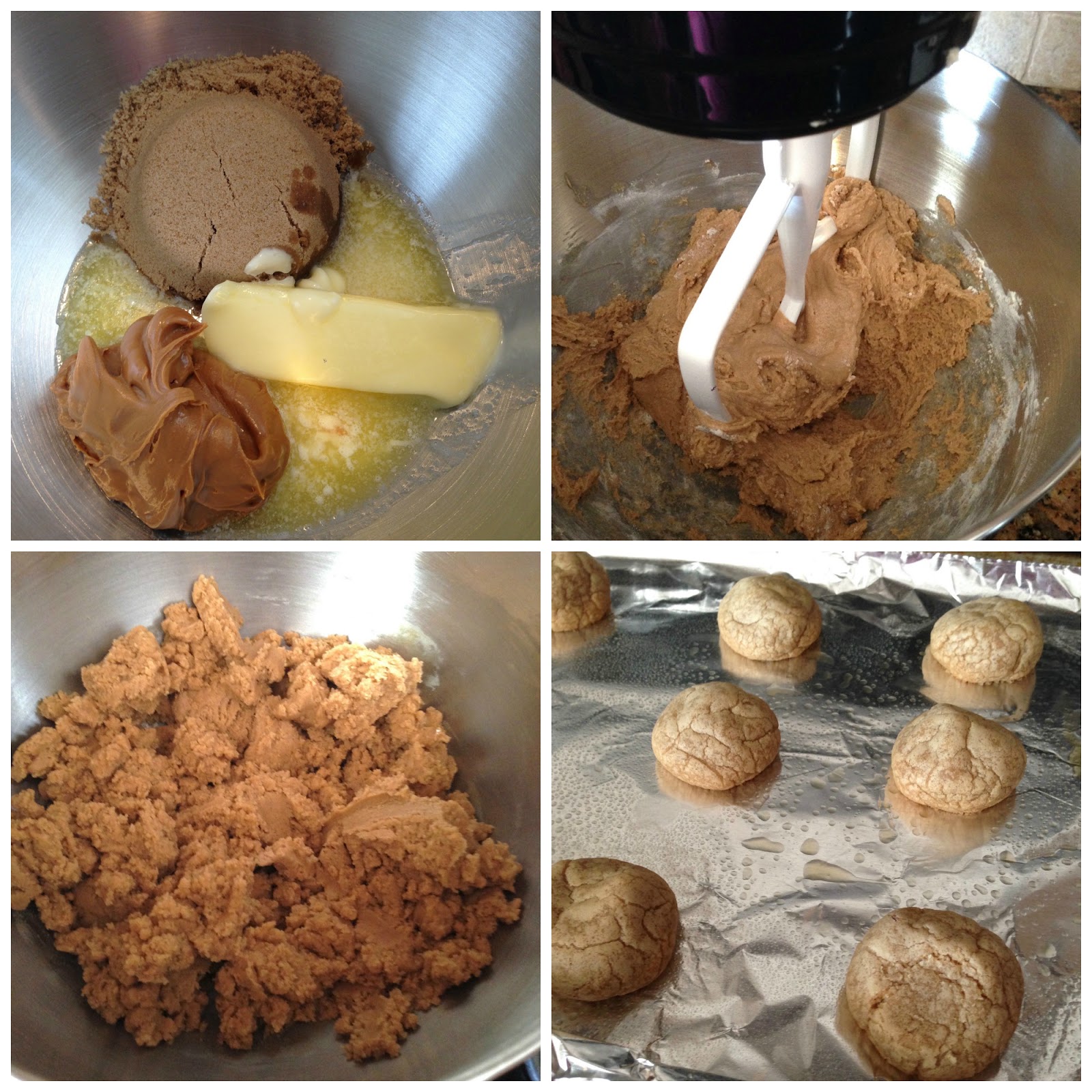 In a mixer, combine butter, cookie spread, brown sugar, and granulated sugar mixing for approximately two minutes.