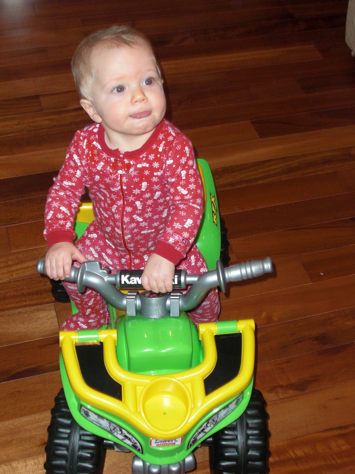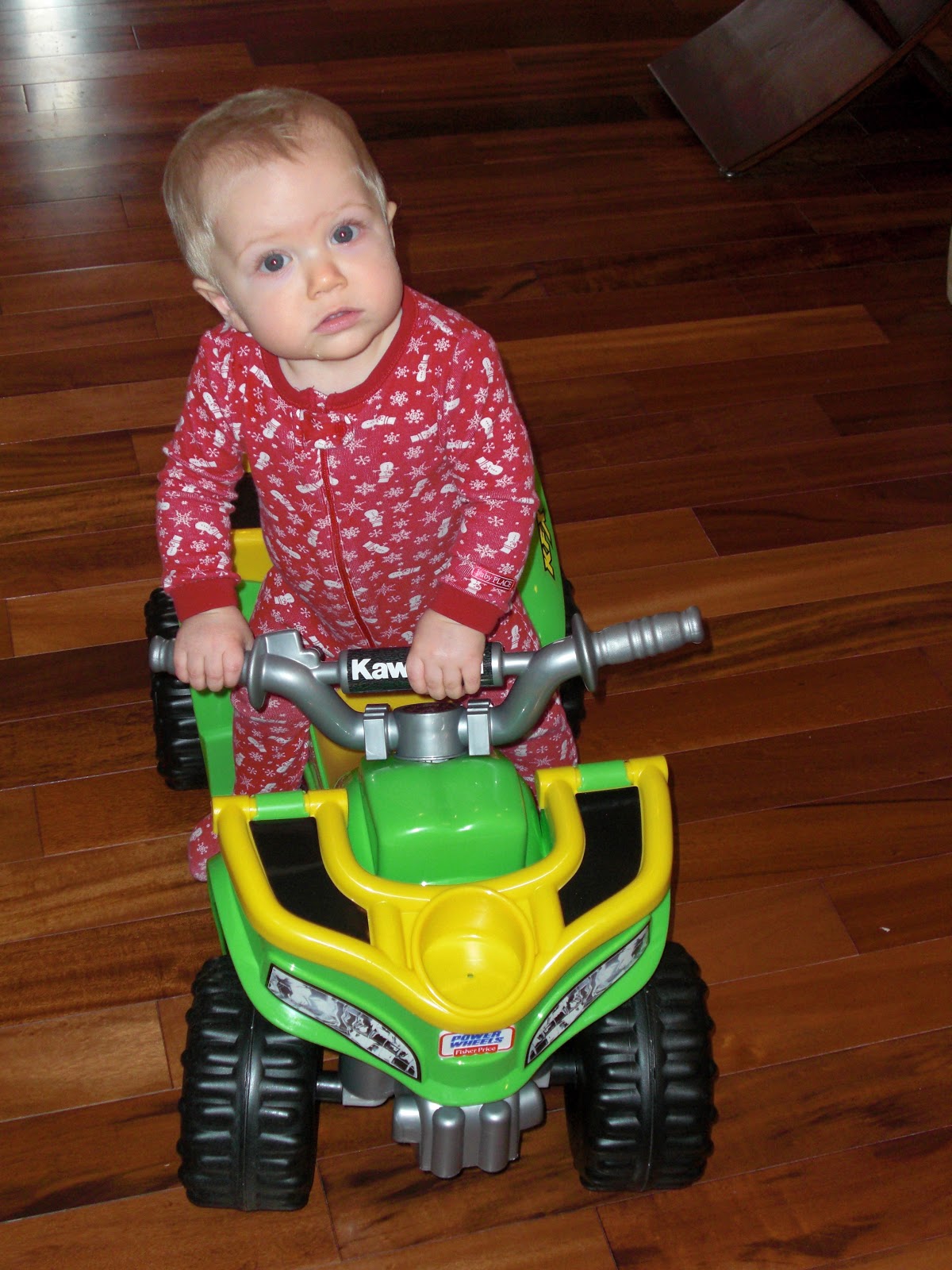 A new 4 wheeler! Although GiGi got him a motorcycle, we wanted to get him a big 4 wheeler to replace his little jeep that he got on his very first Christmas.