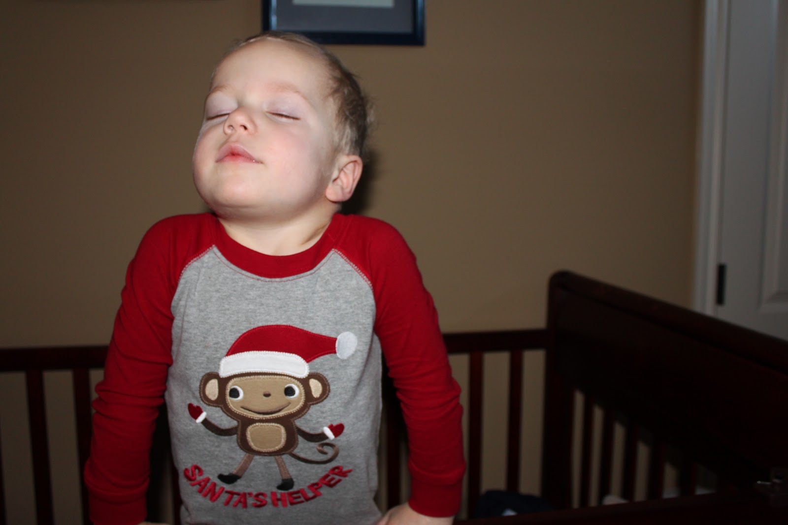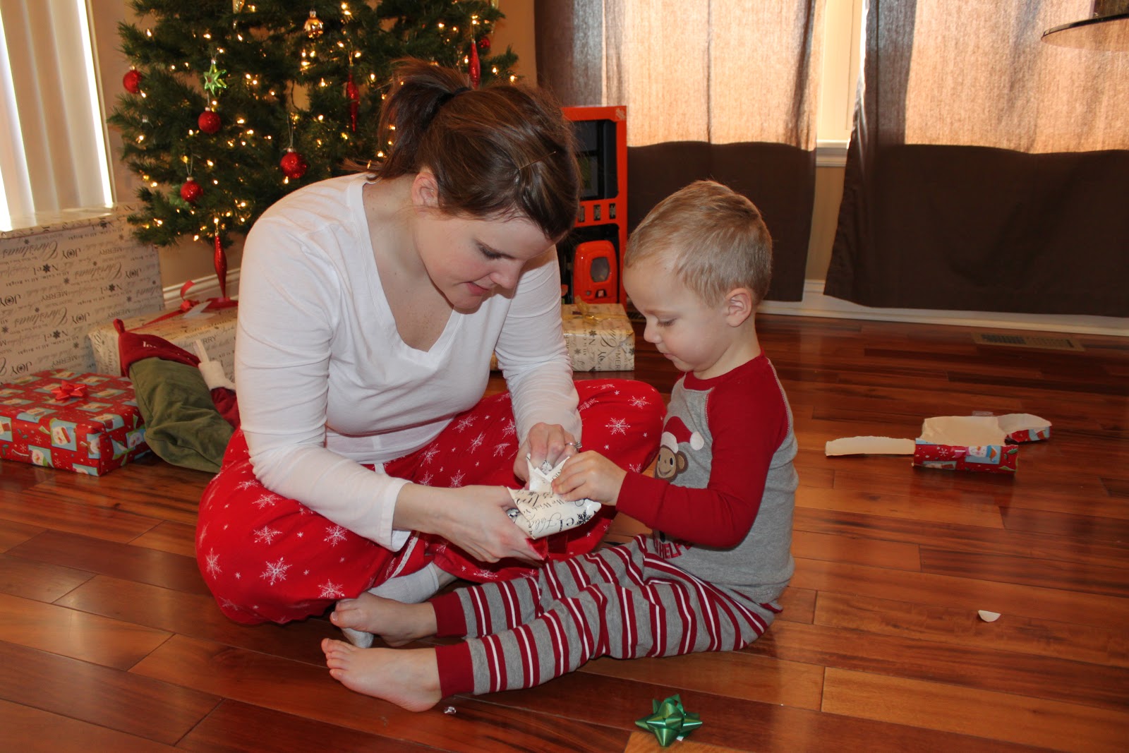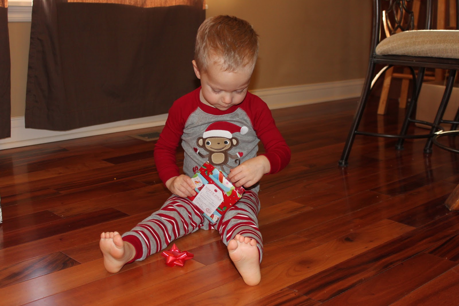 Christmas morning. Of course it’s the one morning where Ben sleeps in past 8:00. Still half asleep but ready to open presents.