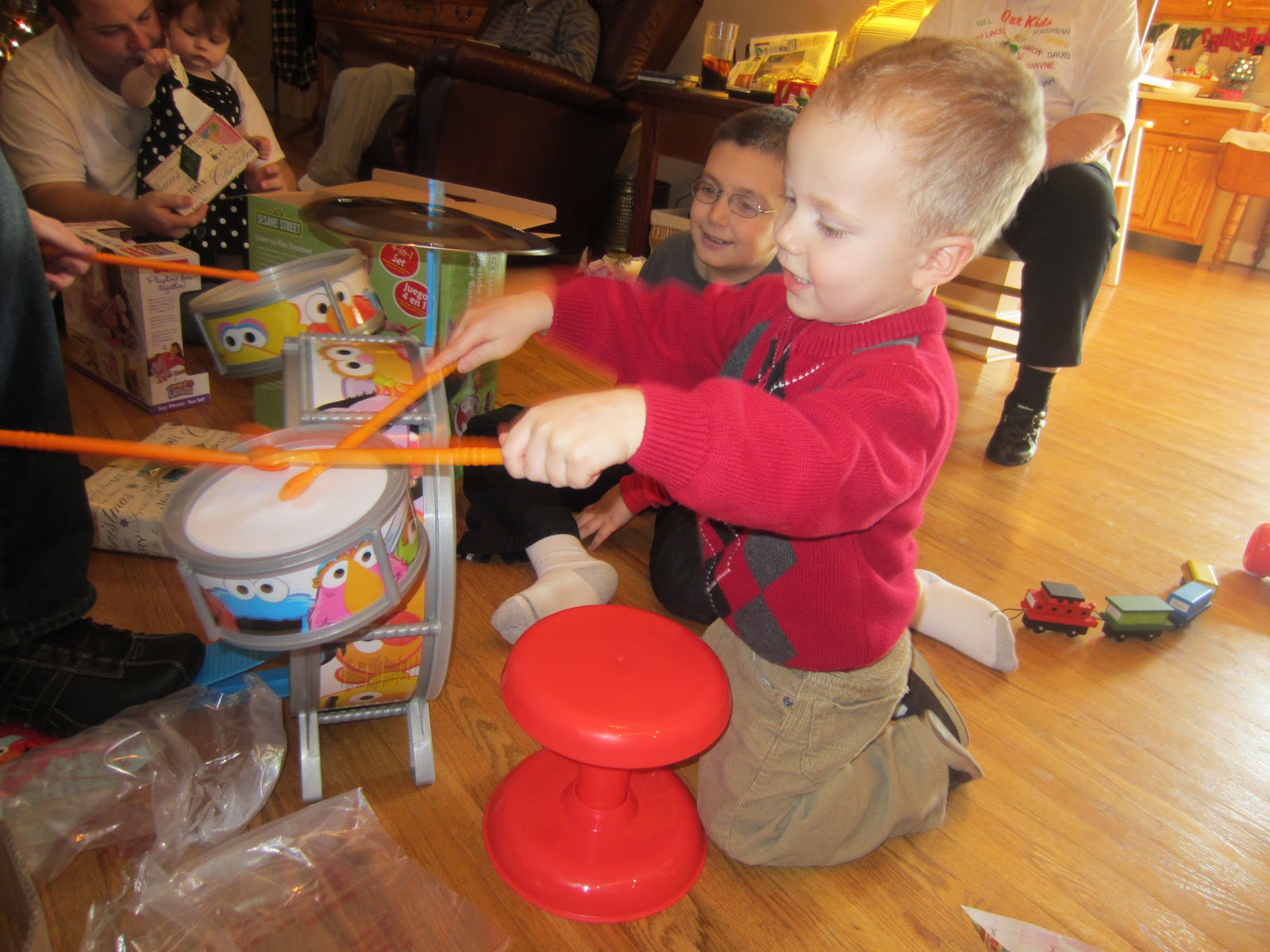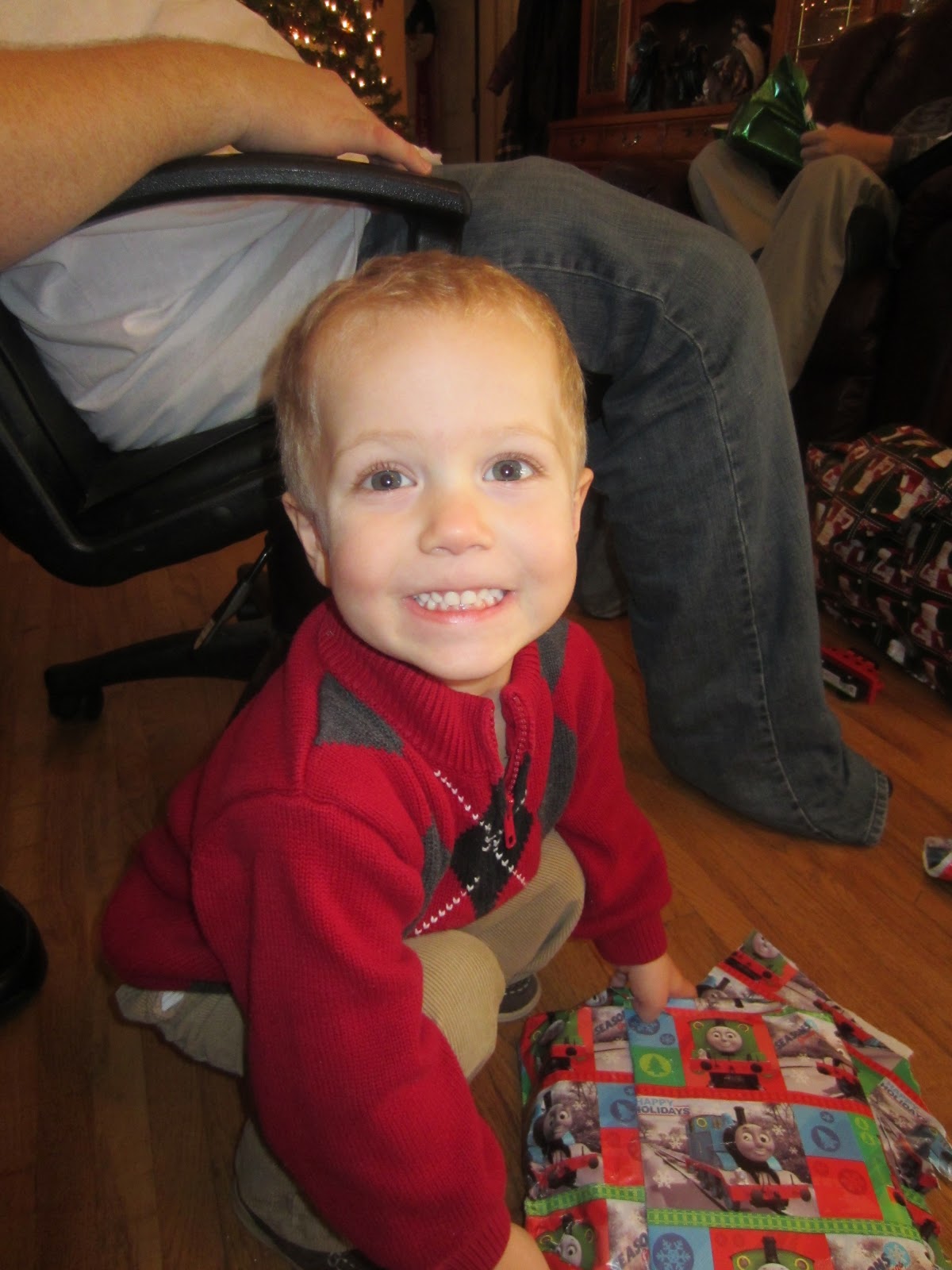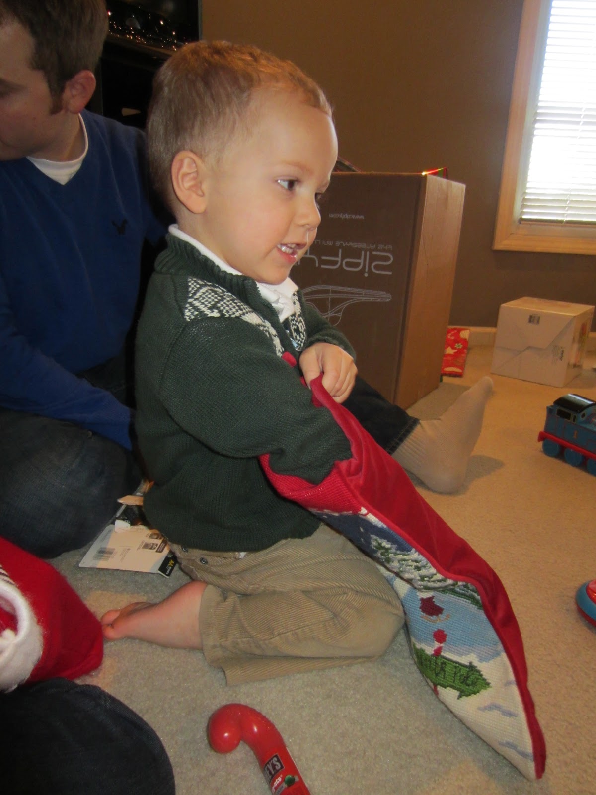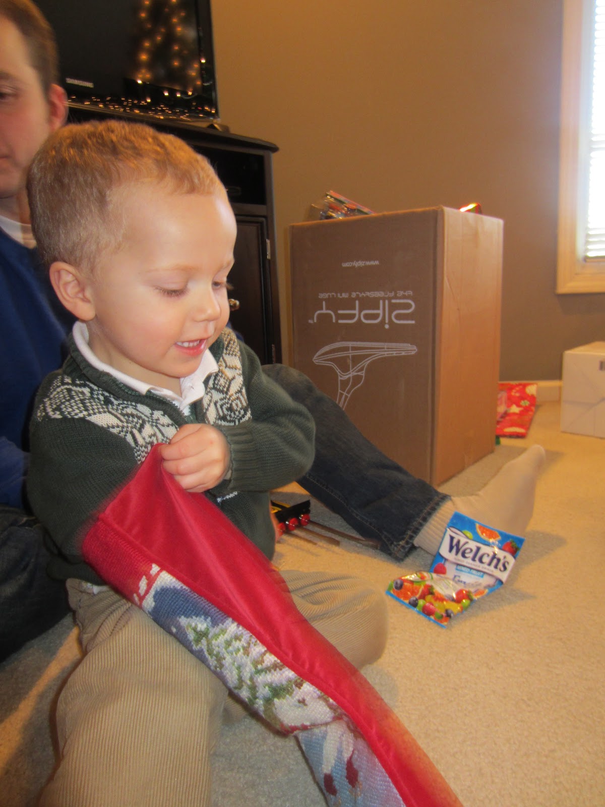 Christmas morning. Of course it’s the one morning where Ben sleeps in past 8:00. Still half asleep but ready to open presents.