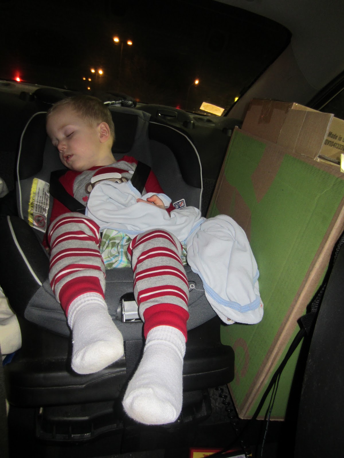 Ben was surrounded by presents and passed out cold before we even made it to the highway.