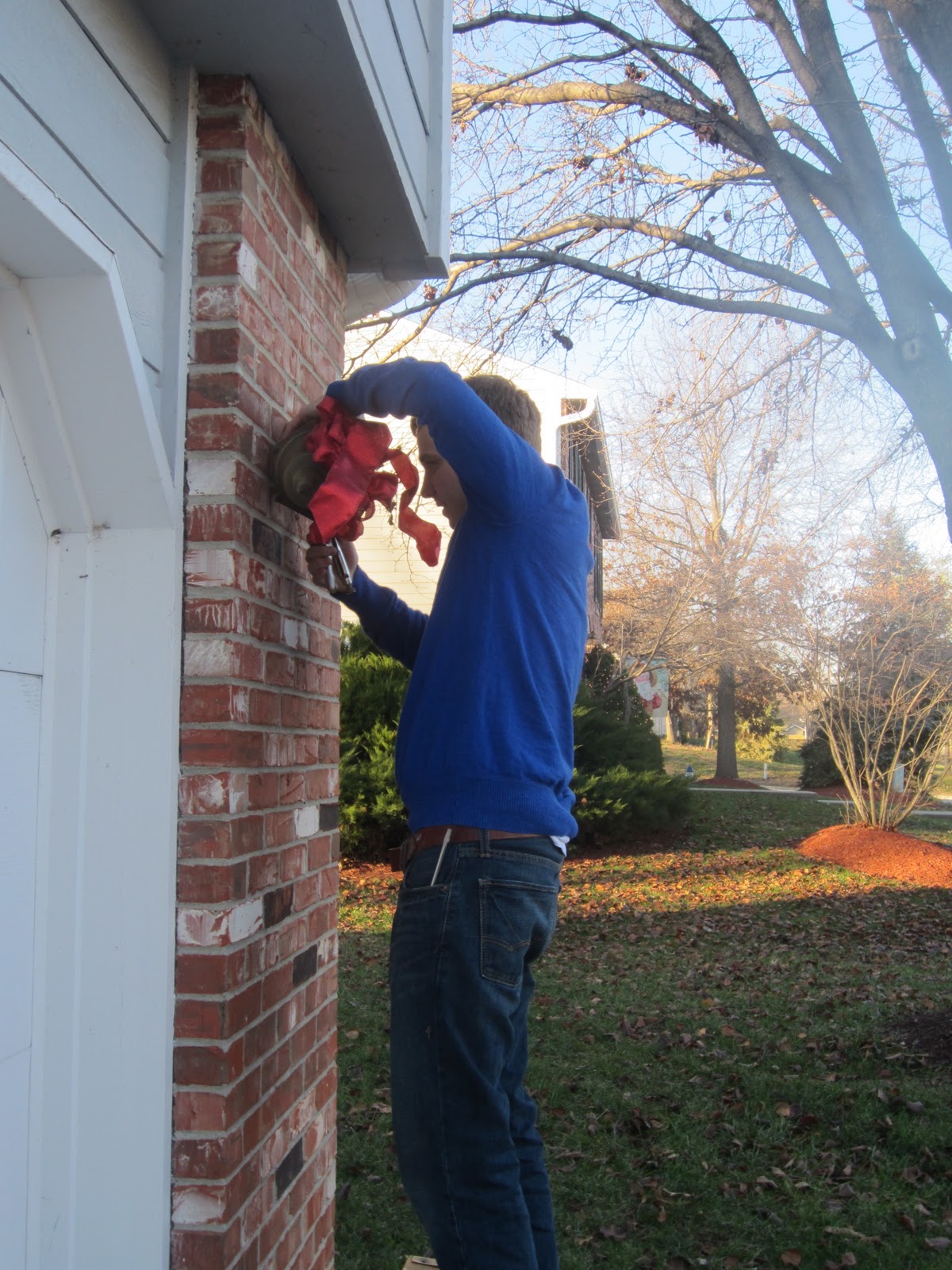 We couldn’t let J just relax and open presents. My mom put him to work taking down her old lights outside and replacing them with the new ones we got her for Christmas.