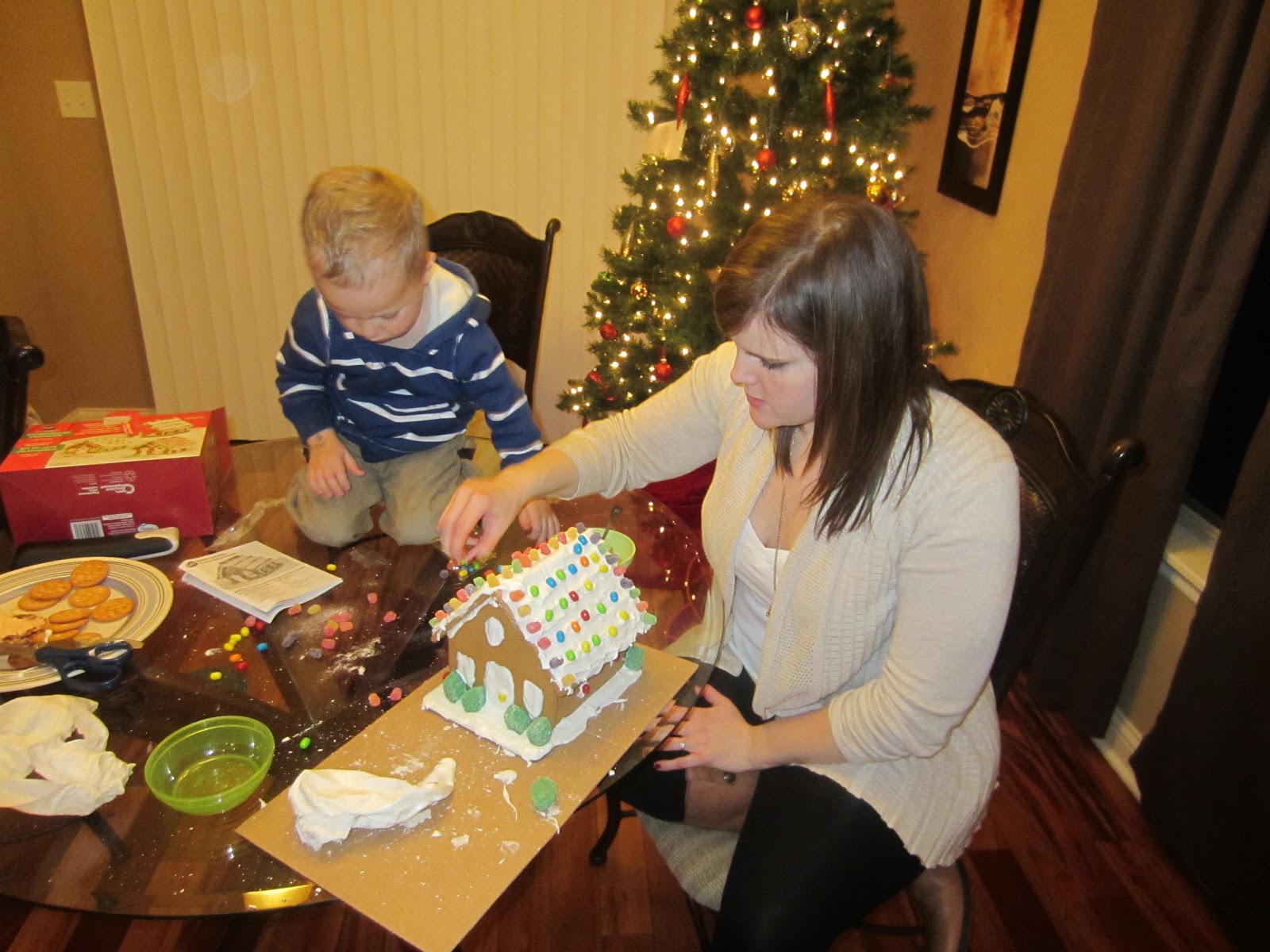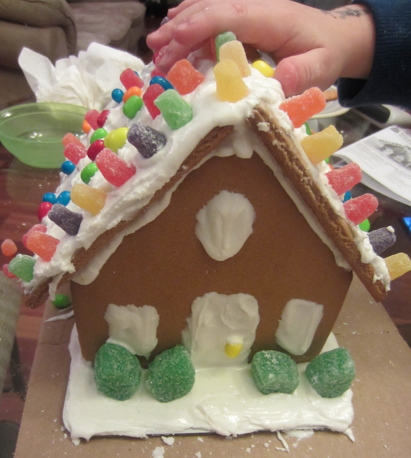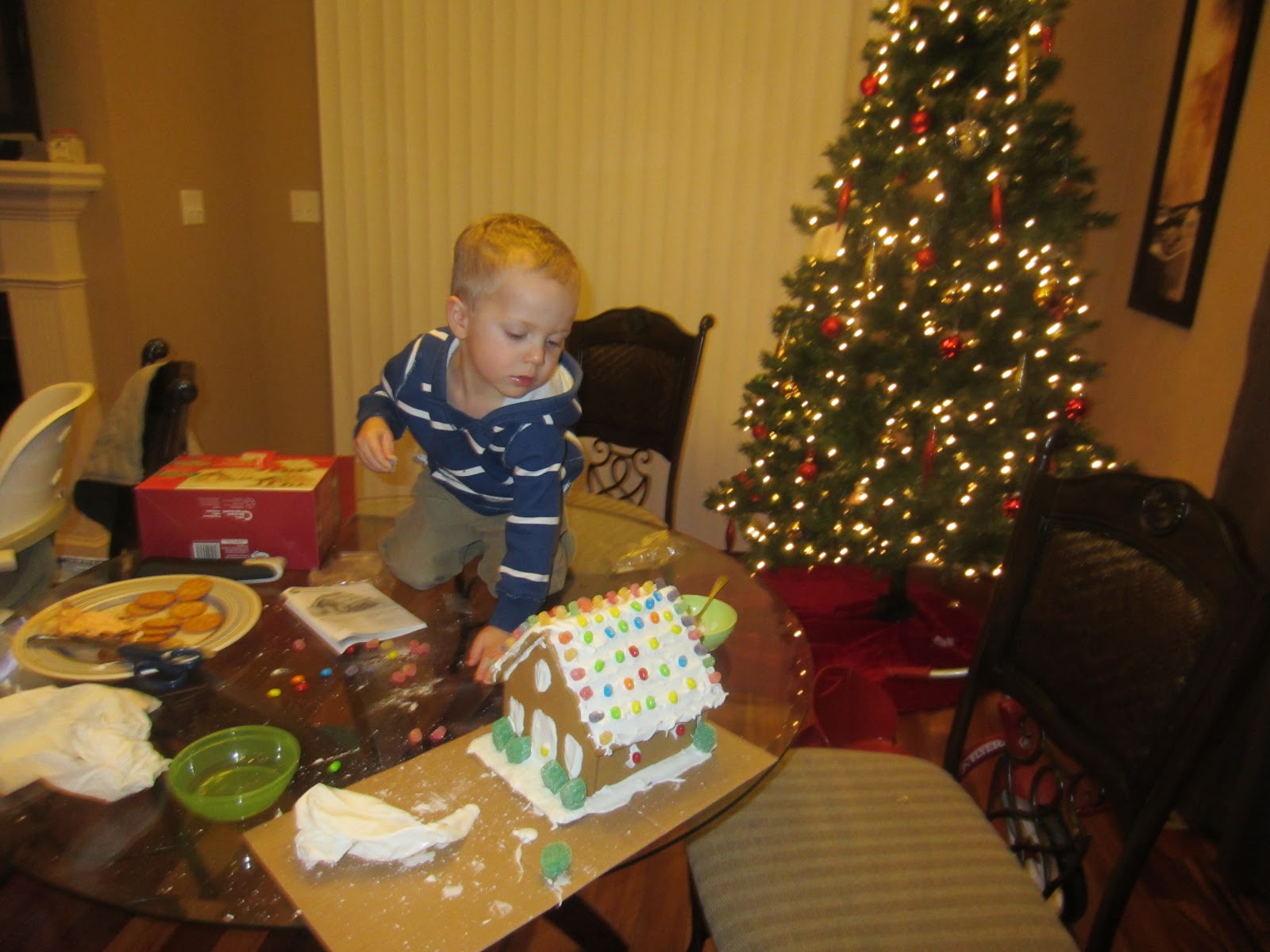 Later that night we decorated our Gingerbread Man House. Every year we do this and every year I can’t remember why. The icing doesn’t really stick and you can’t even eat the darn thing.