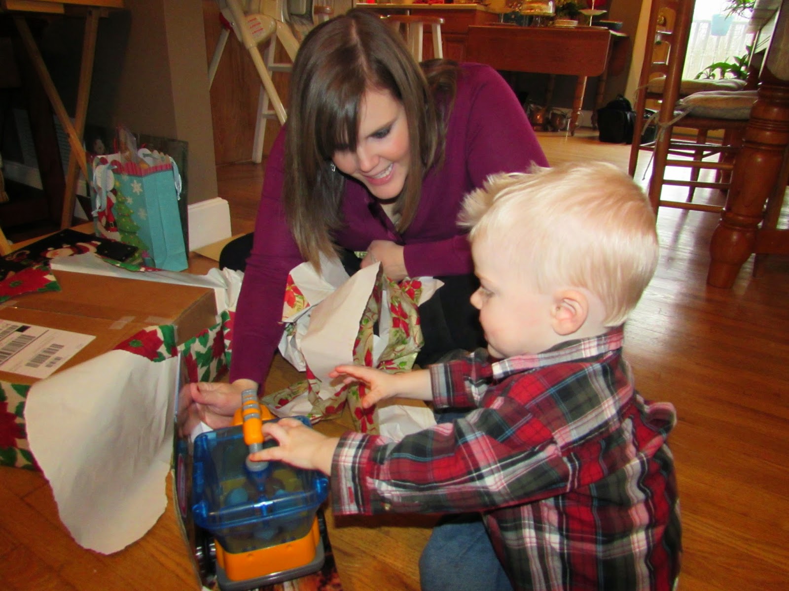 By the end of the night Jack was so tired he climbed into this box and tried to lay down. Opening gifts isn’t for the weak.