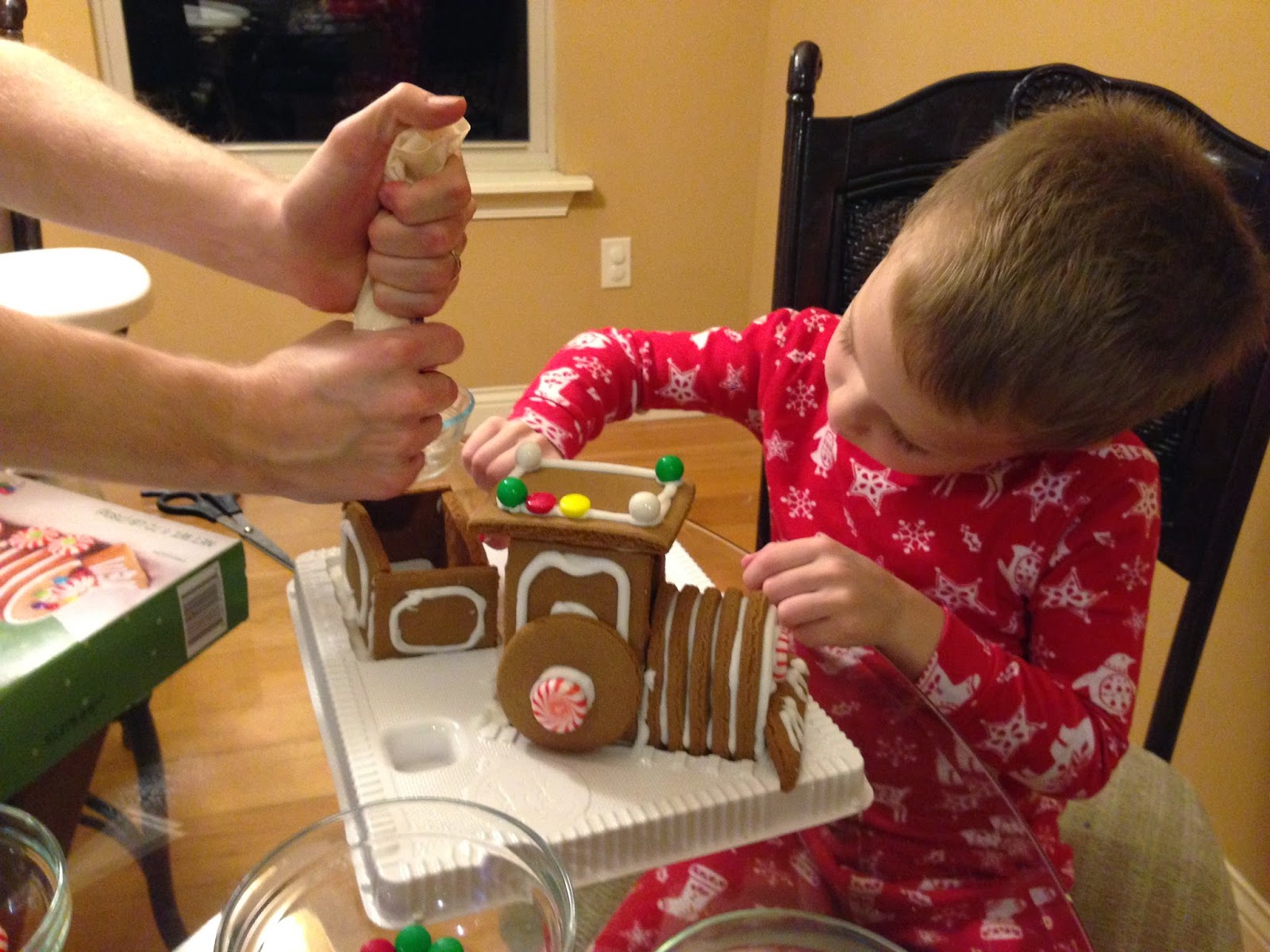 We also decorated a gingerbread train. J is usually in charge of the construction and then Ben decorates and eats half the candy.