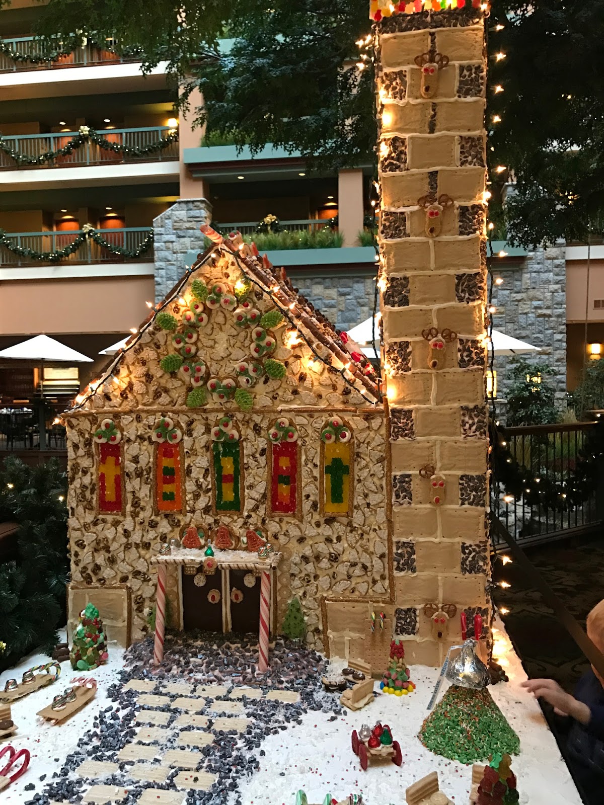 We woke up to about an inch of snow on Sunday morning and braved the steep, curvy roads up to the Chateau on the Lake to check out their famous gingerbread villages. The hotel itself was beautiful and like the name suggests, right on the lake. The kids loved that the hotel had a glass elevator and I think we’ll have to stay here during our next visit.