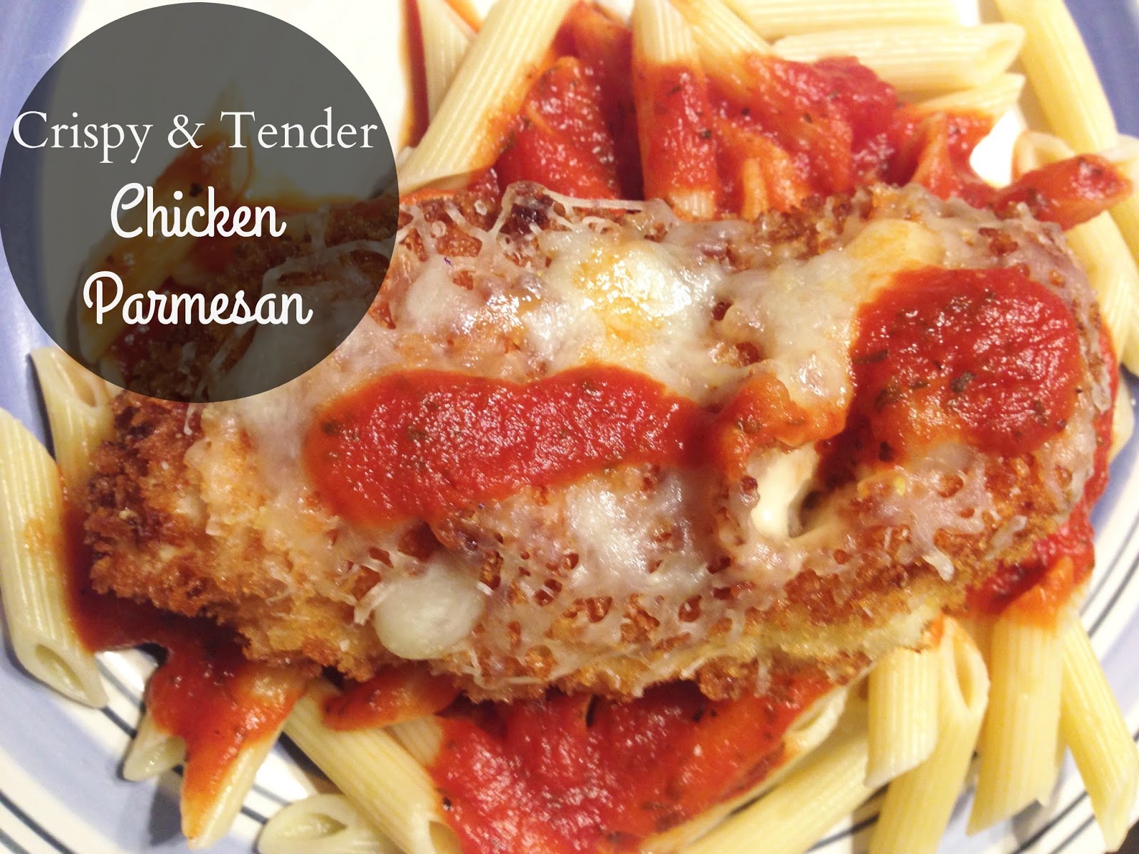 Despite seeming complicated, Chicken Parmesan is actually pretty easy to make. One thing that will kill this dish however is a soggy coating. Blah. Just thinking about it makes me want to gag. Lucky for you, this recipe will leave your chicken crisp on the outside and tender and juicy on the inside.