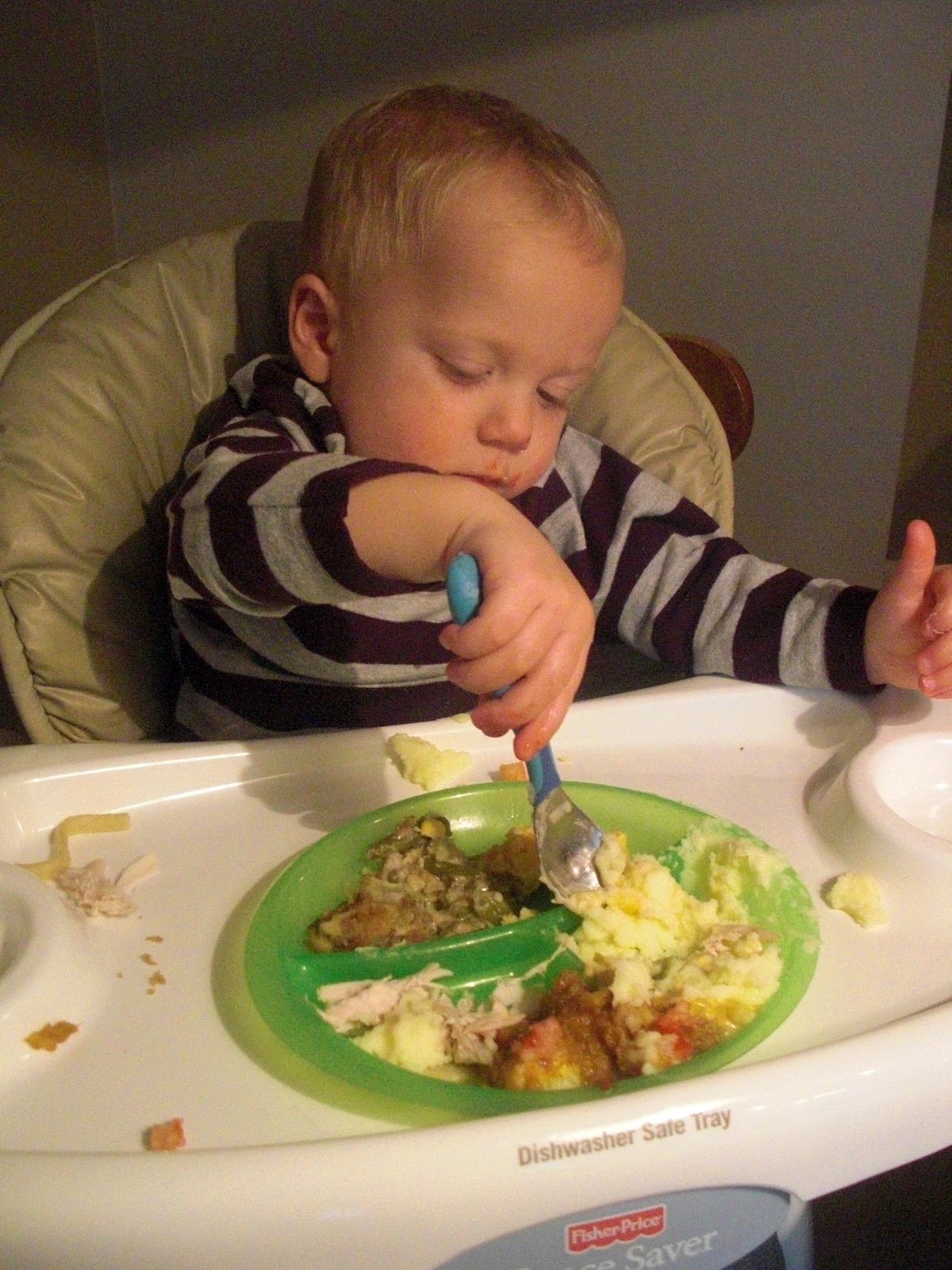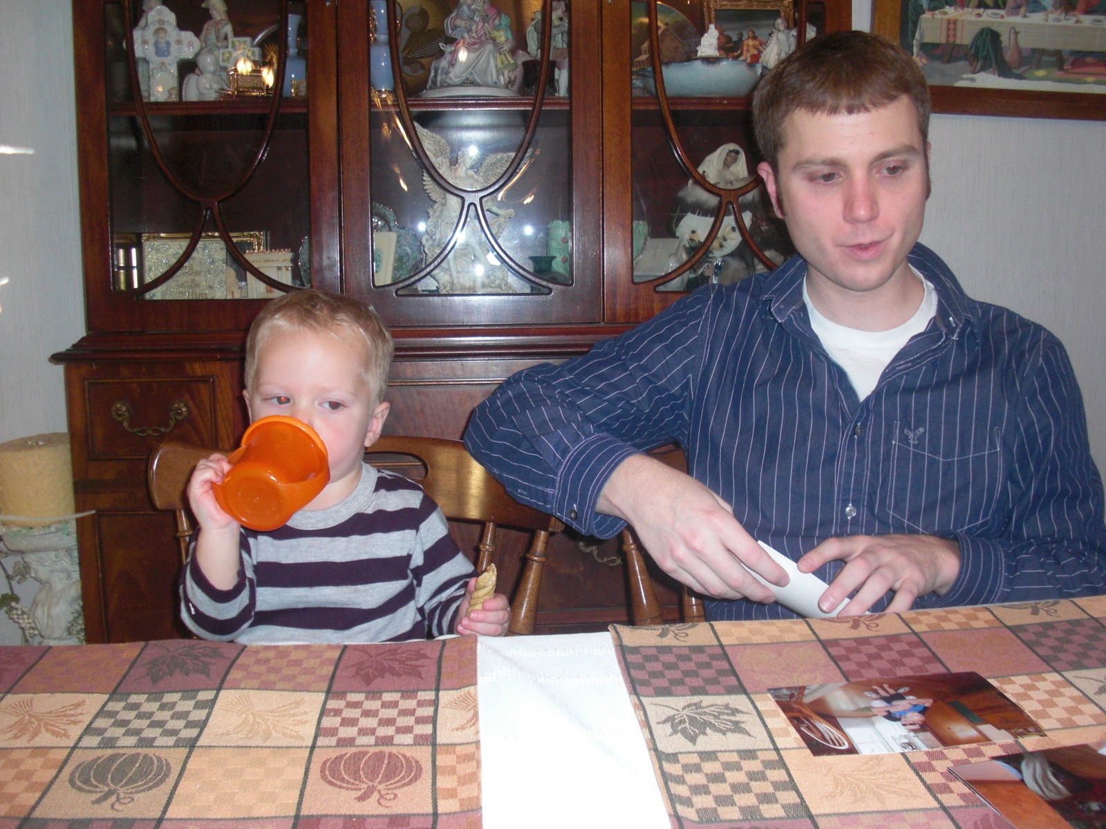 Our actual Thanksgiving began with an early lunch at my parent’s house. Knowing that just a few hours later we would be going to J’s grandma’s house we vowed to eat light. Two platefuls of mashed potatoes, green bean casserole, turkey, and stuffing later…opps.