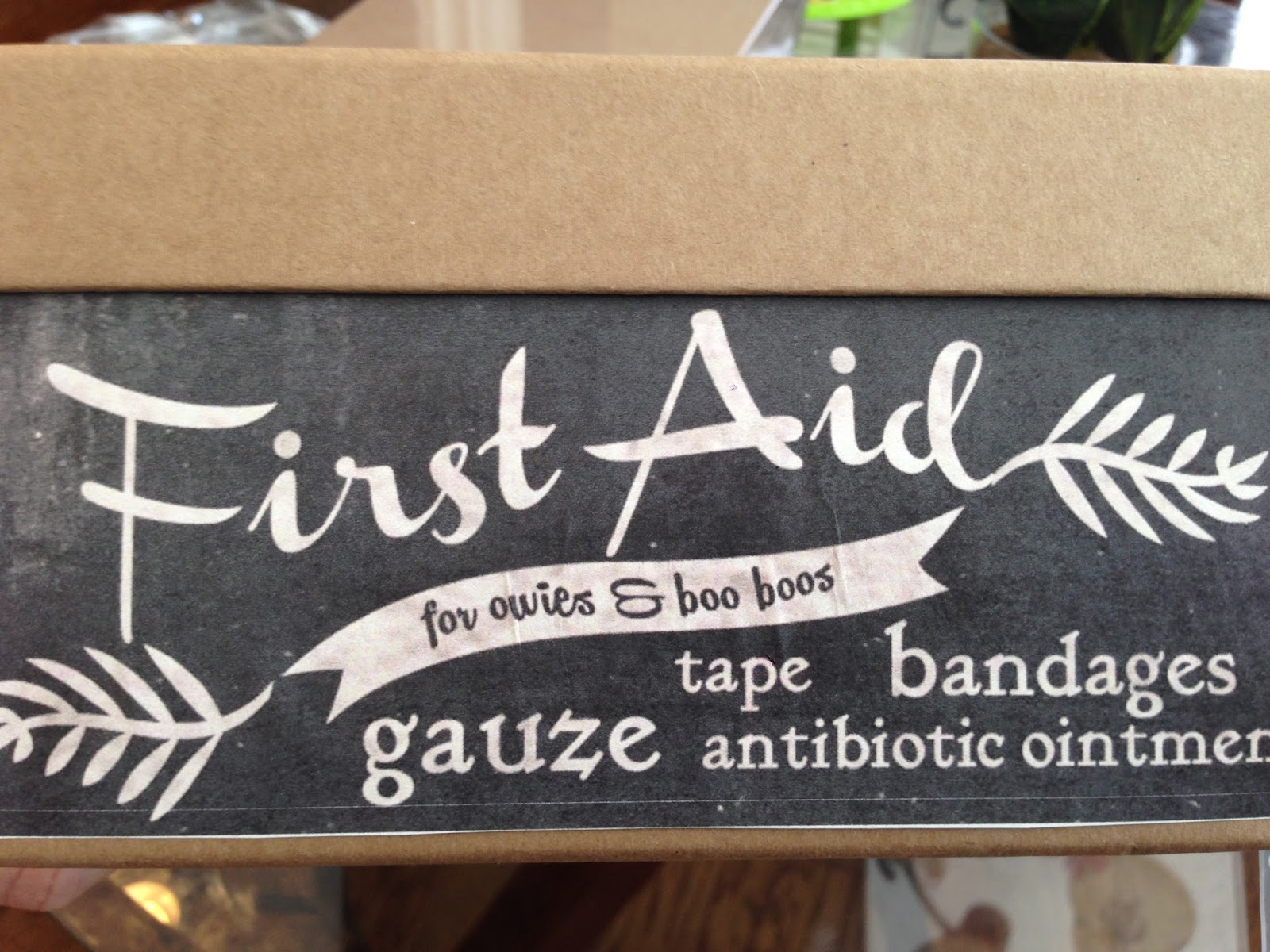 3. Place items back inside each box. We used First Aid for all the bandages, gauze, Neosporin, aloe vera, etc. All the other medicine went into the Aches and Pains box.