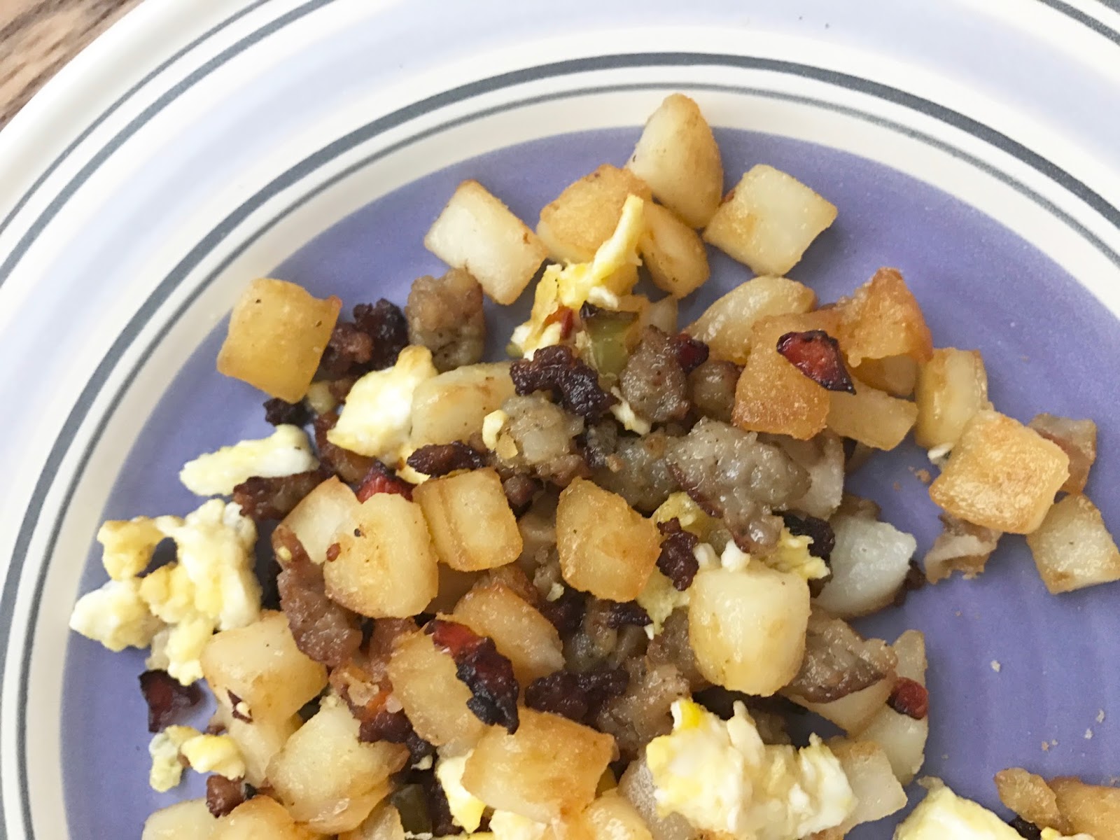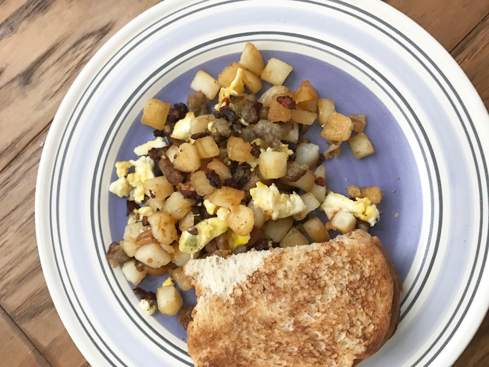 -Use the sausage skillet to scramble eggs (saves on dirtying more dishes)