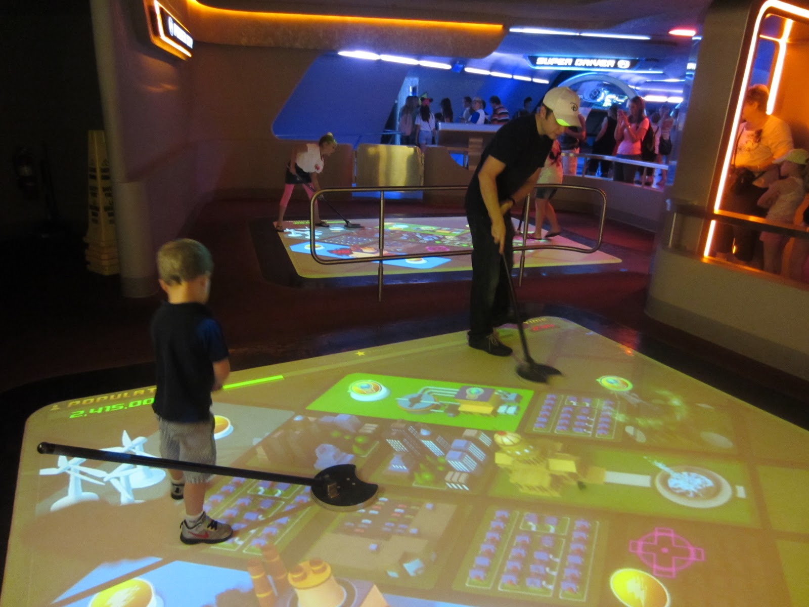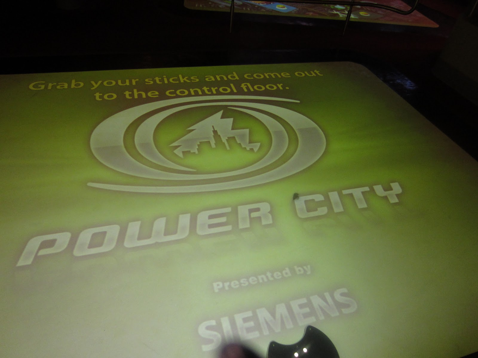 When you get off the ride there are different games and learning centers also inside the ball. This air hockey type of game had you make energy in different parts of a city.