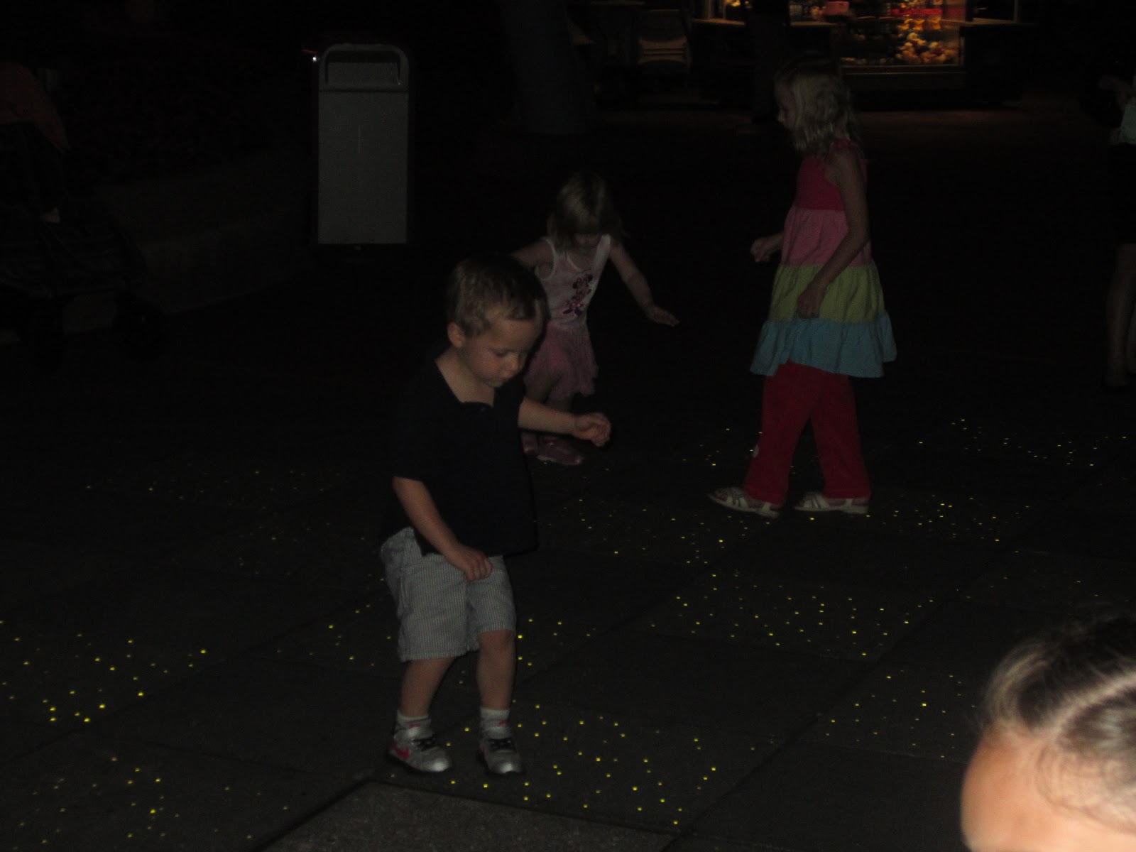 We stopped briefly to look at the sea of cranberries and Ben was fascinated by the light up sidewalk.