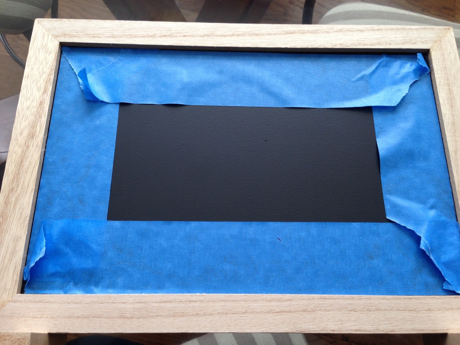 1. Tape off the inside of the board to keep the stain off of it and stain away. I prefer the Miniwax brand and wish I would have gone with a little darker color of stain.