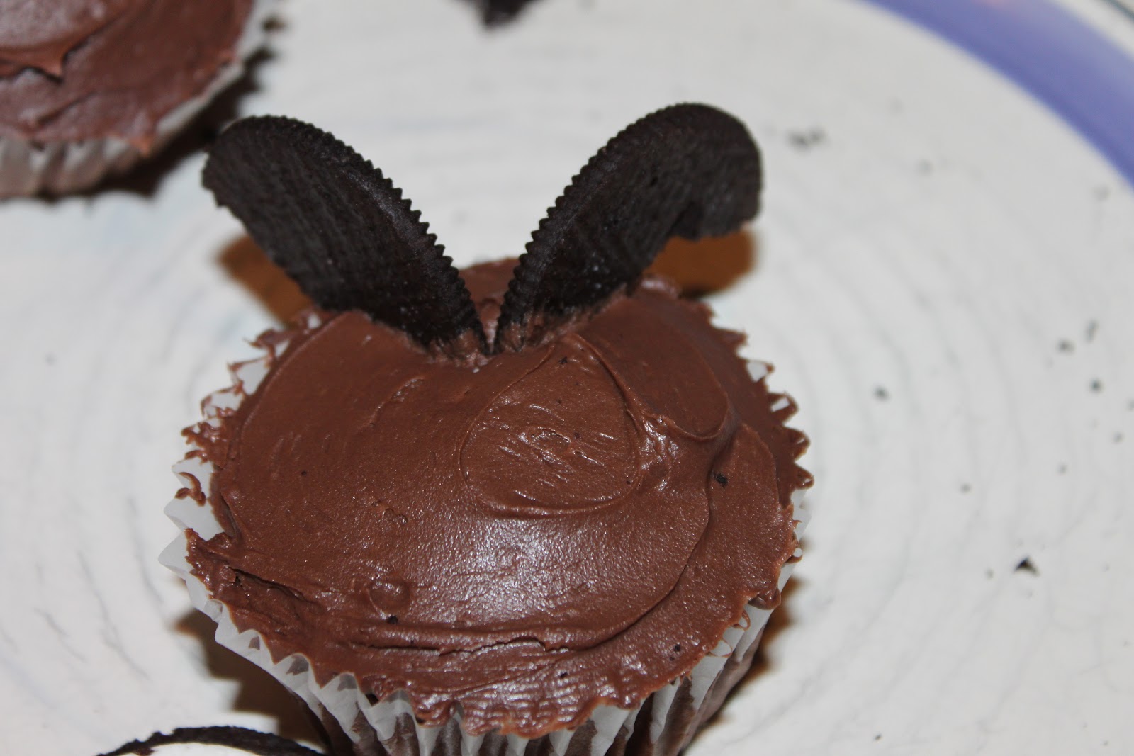 4. Stick the halved cookie into the cupcake making eyebrows.