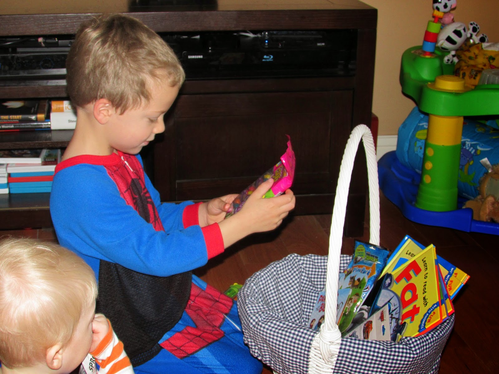 I love Pottery Barn’s Easter baskets and ordered Jack the white one to match Ben’s. When I got it in the mail this week I realized I ordered Jack the large sized basket. I ended up just turning the embroidered names to the back and made Jack’s the little one. I plan to order Ben the larger basket for next year so they’ll match.