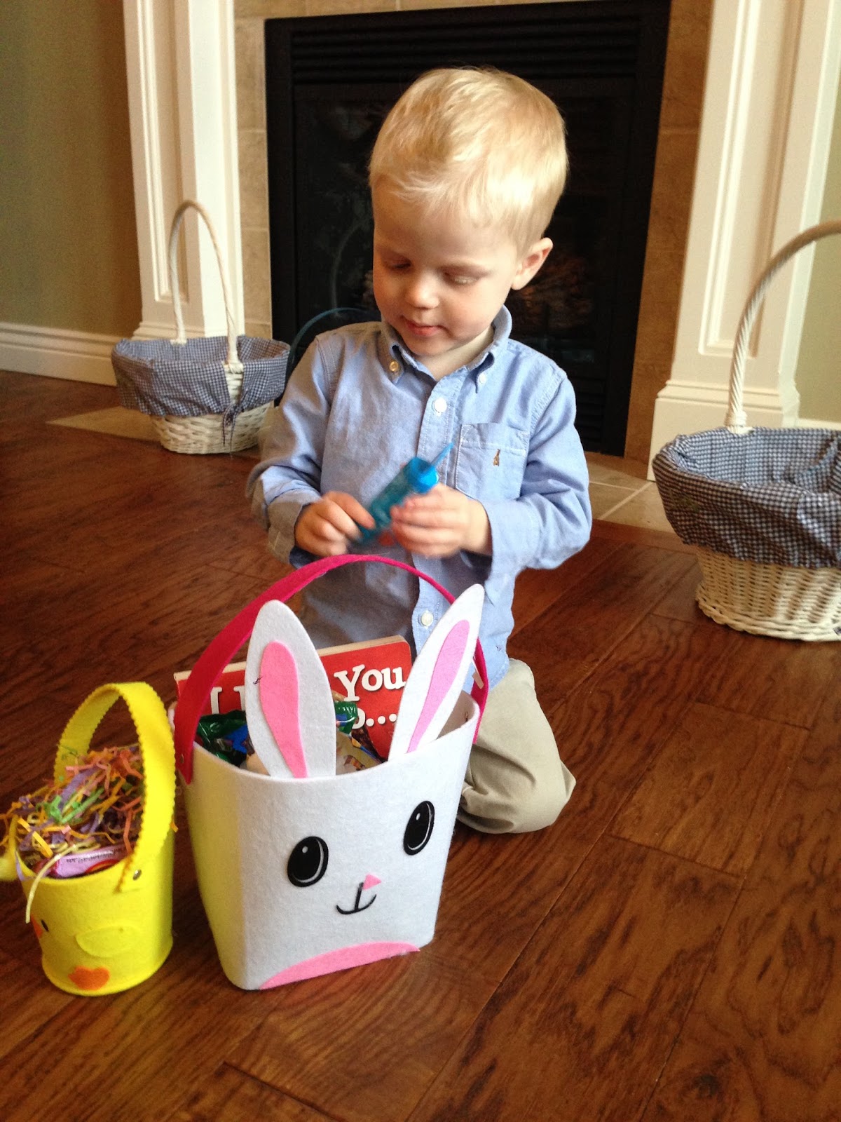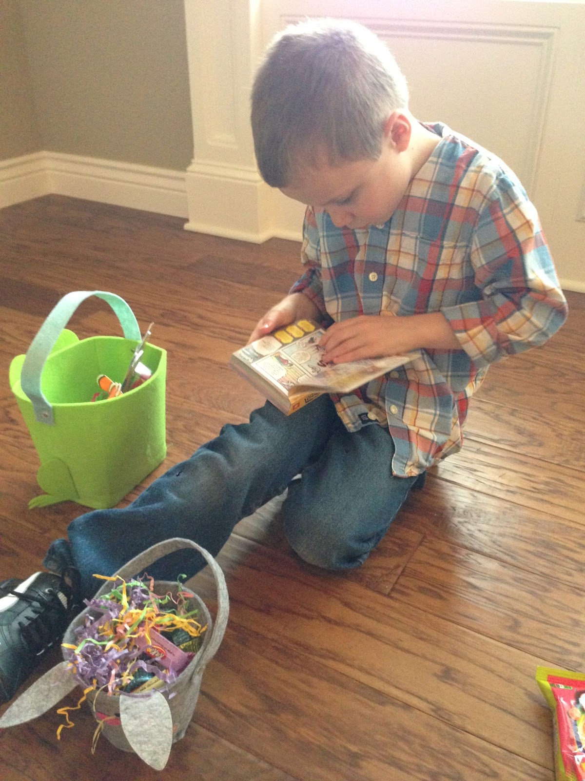 Thankfully while we were at church the Easter Bunny hid eggs throughout the house since it was raining outside.