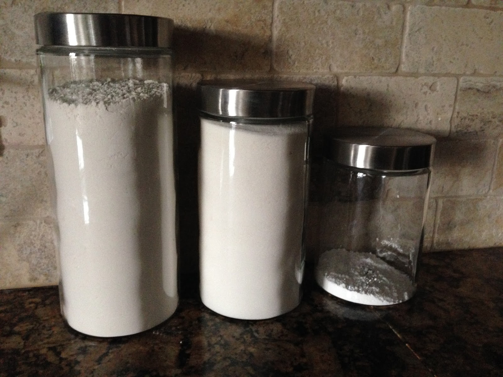 I swapped out our stainless steel canisters for these glass ones and am loving the new look. Even better, these were a Goodwill find 🙂