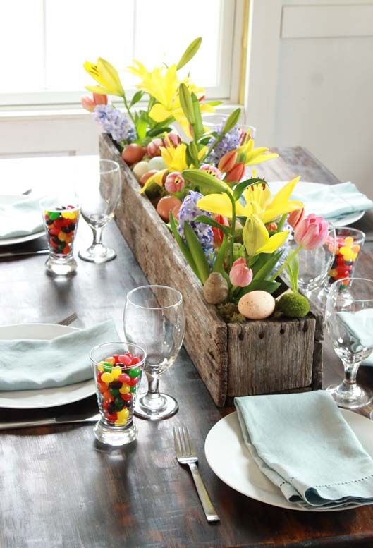 We host Easter lunch at our house every year and I love the look of this centerpiece. Now to convince my husband to build me a box like this…