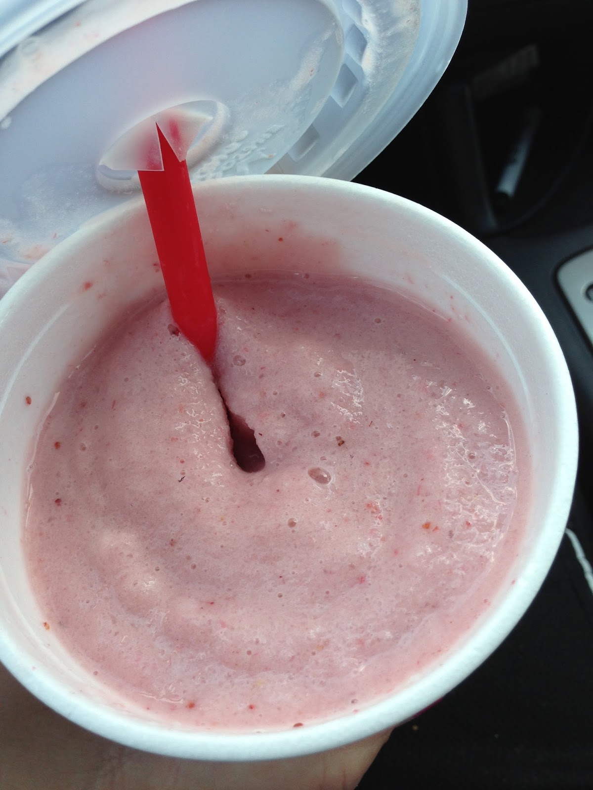 After our little vacation here, it was time to get back on the healthy(er) eating train. I tried a strawberry greek yogurt smoothie the other day for lunch and it was pretty good and only 250 calories. You have to be careful with these things because sometimes with the sugar and calories in some smoothies you might as well be eating pizza.