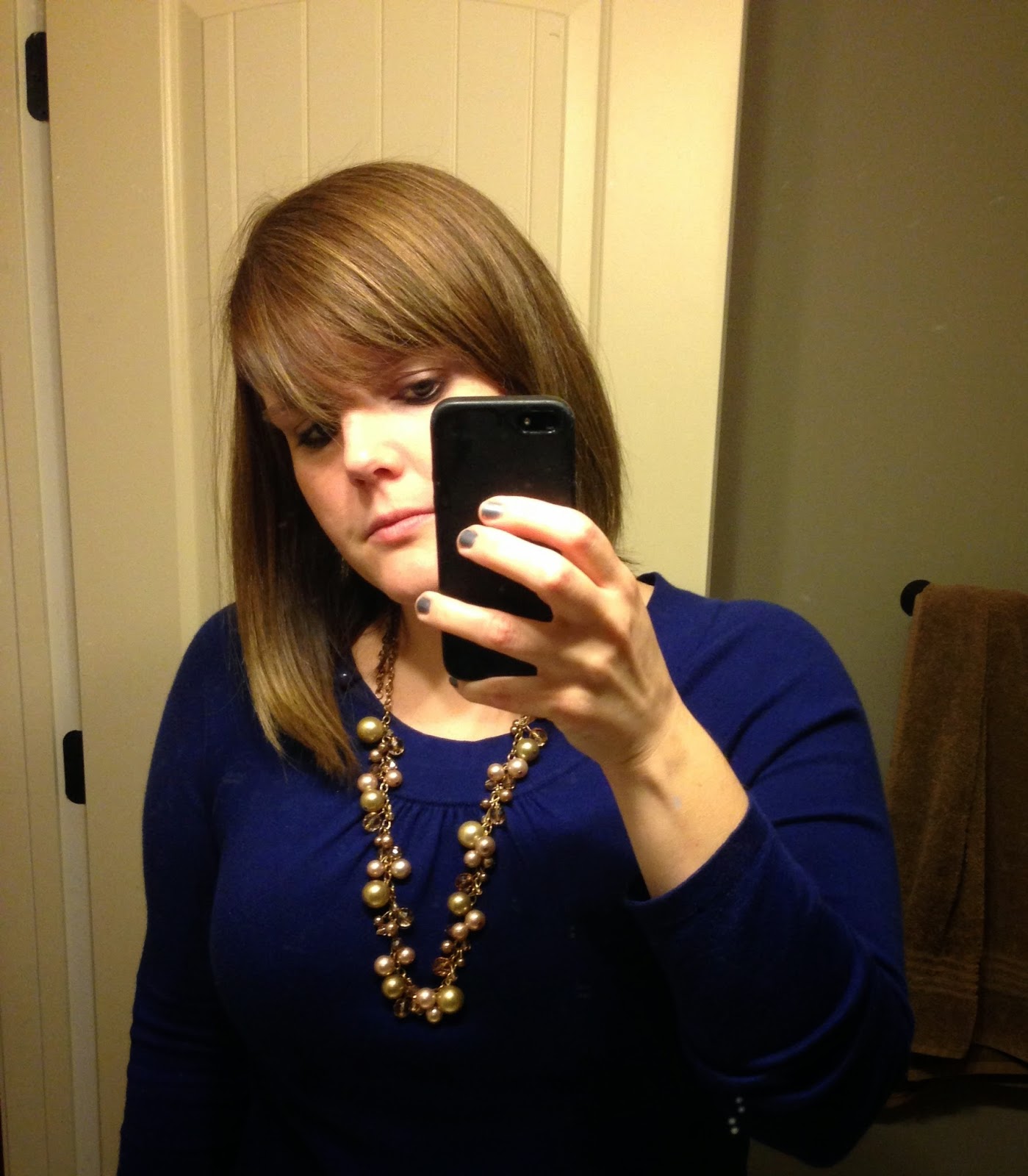 I wore this sweater and necklace for the conference and there’s something I love about the combination of rose gold and royal blue.