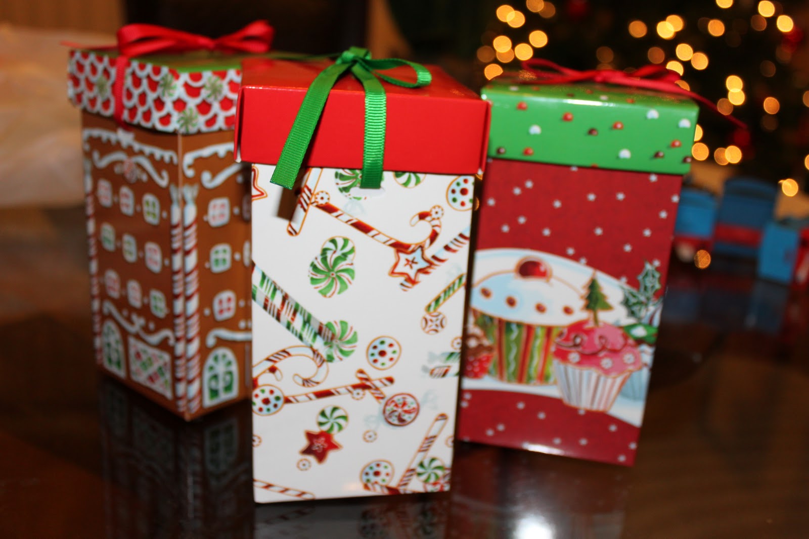 I also picked up some cute decorative boxes and bags to put the goodies in. Big Lots just opened up in my town and although most of their stuff wasn’t that great, they did have a lot of festive bags, boxes, and containers.