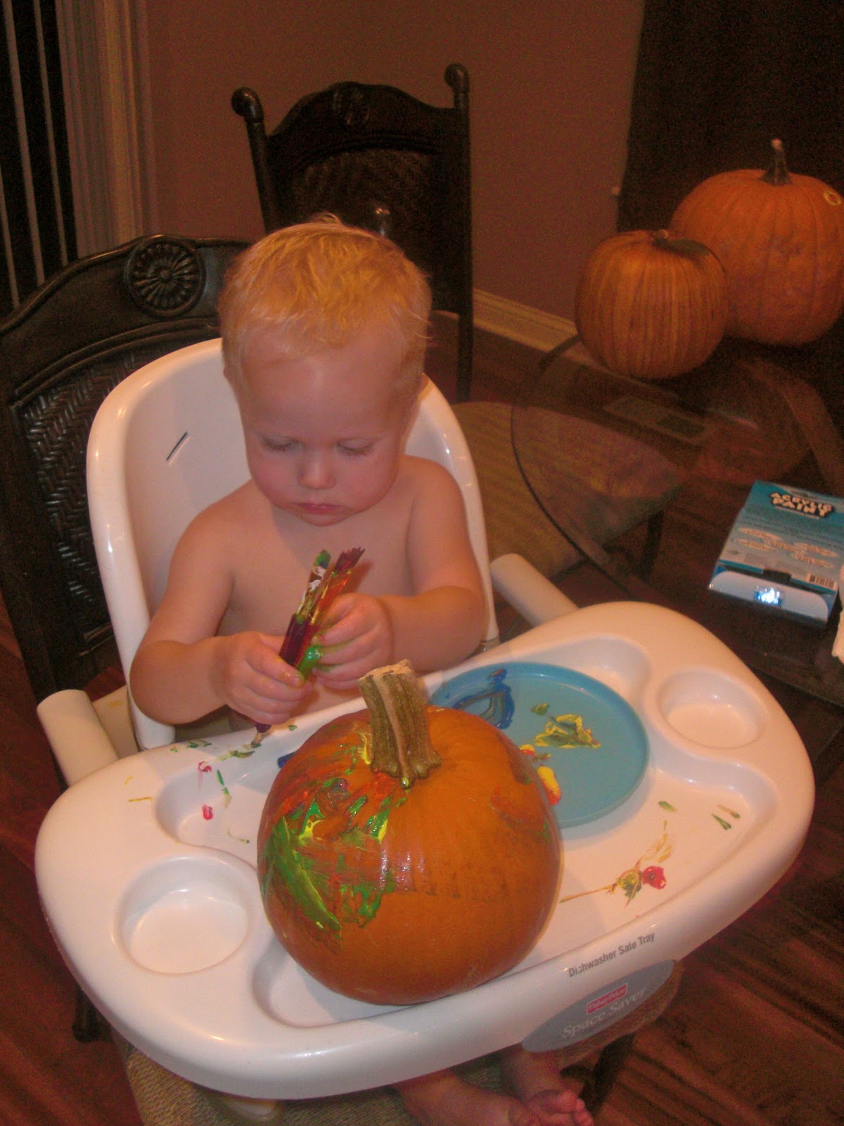 Halloween was such a blast this year. The festivities started a few weeks ago with our annual tradition of carving pumpkins.Wanting our child to keep all his little fingers, we opted for painting instead of carving.