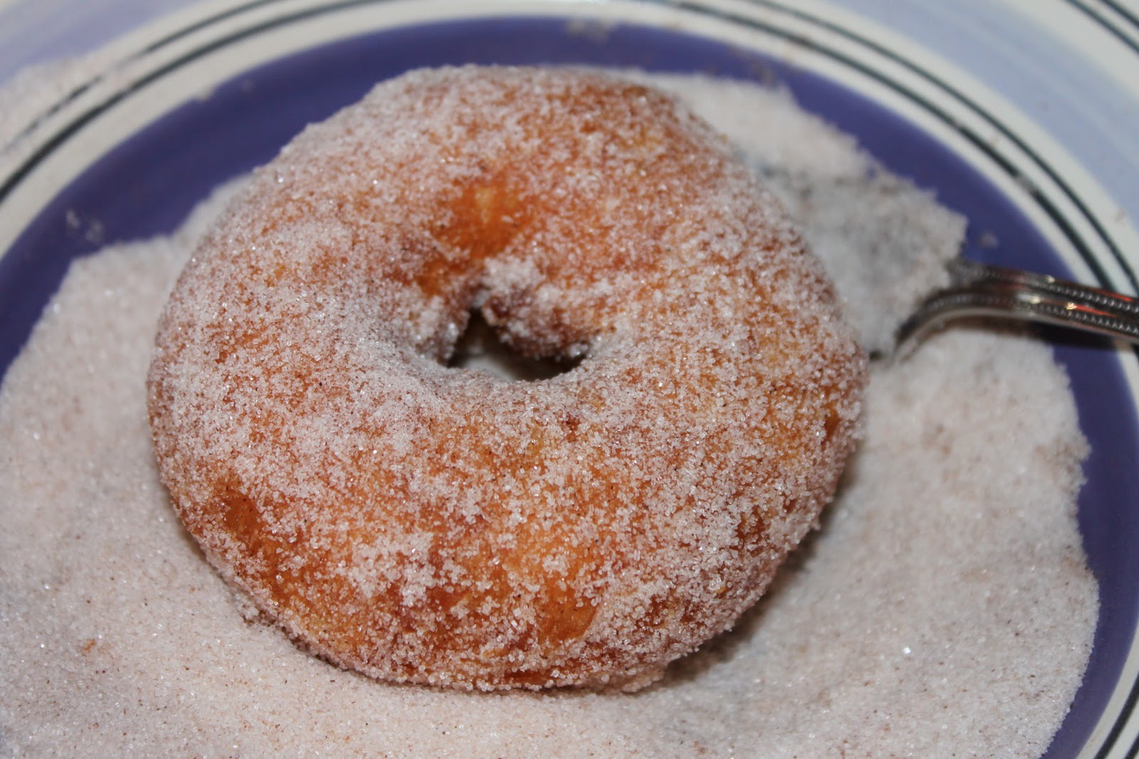 4. Once doughnuts are done, place them on a paper towel to drain off the excess oil, then coat with the cinnamon and sugar mixture. I just mixed equal parts cinnamon and sugar.
