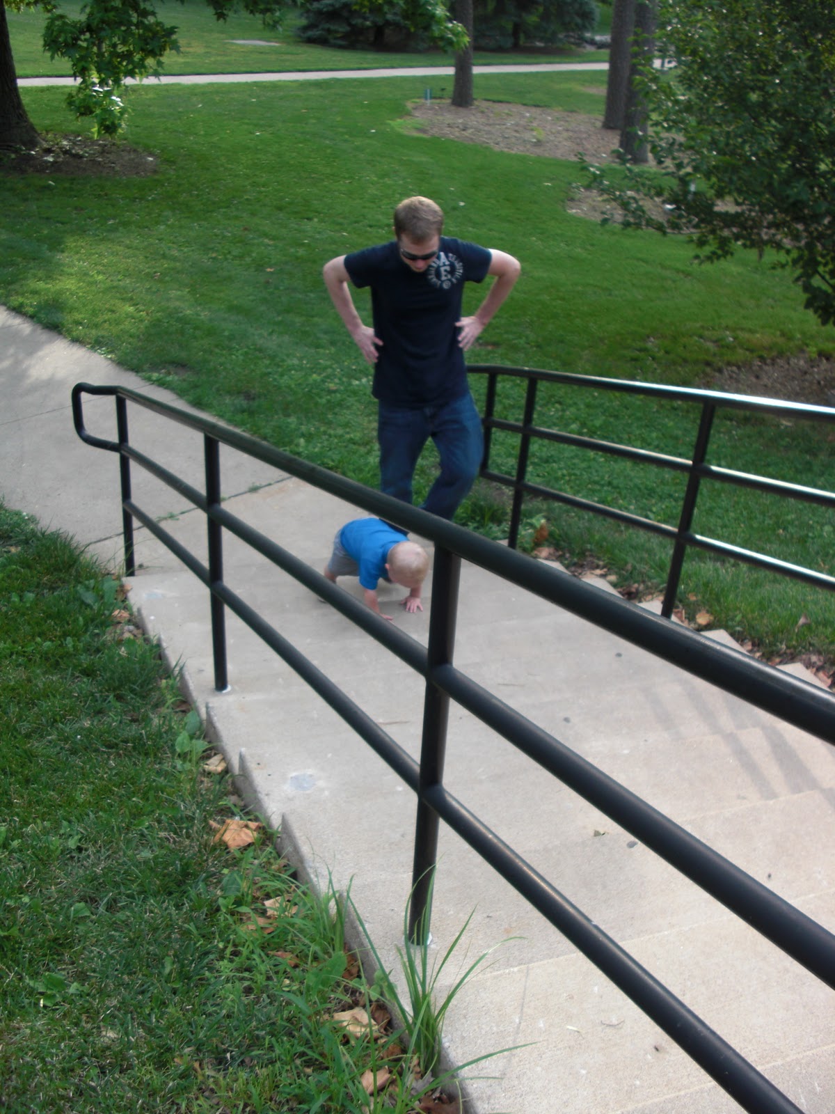 We took our yogurt and walked down to a nearby “park” to eat it and even though the place is referred to as a park by everyone in our town, it isn’t an actual park with slides or swings, but more like open space with a walking path and a creek that runs through it. Ben normally loves ice cream, but he was just so excited to be outside and have tons of open space to run that he probably ate 2 bites and was off. He had such a blast just running and running. Until he face planted it. On the concrete. Thankfully he was ok.