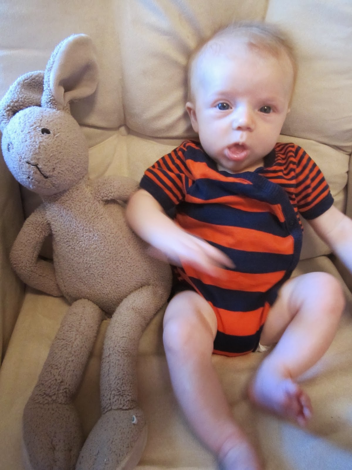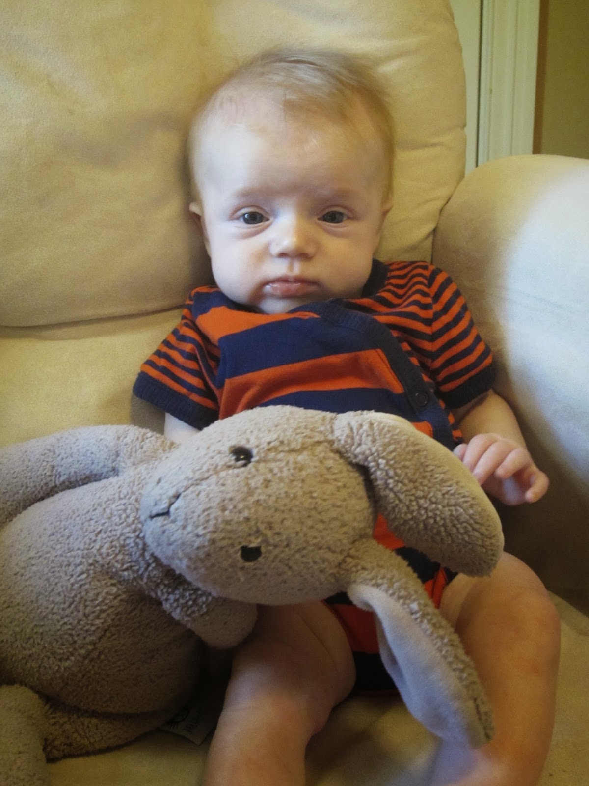 Jack, you have been with us an entire 3 months. You are most definitely growing. I used to be able to hold you with one arm, no problem at all, but it’s becoming more of a challenge as you chunk up.
