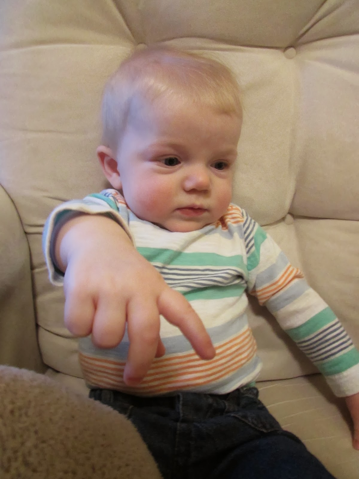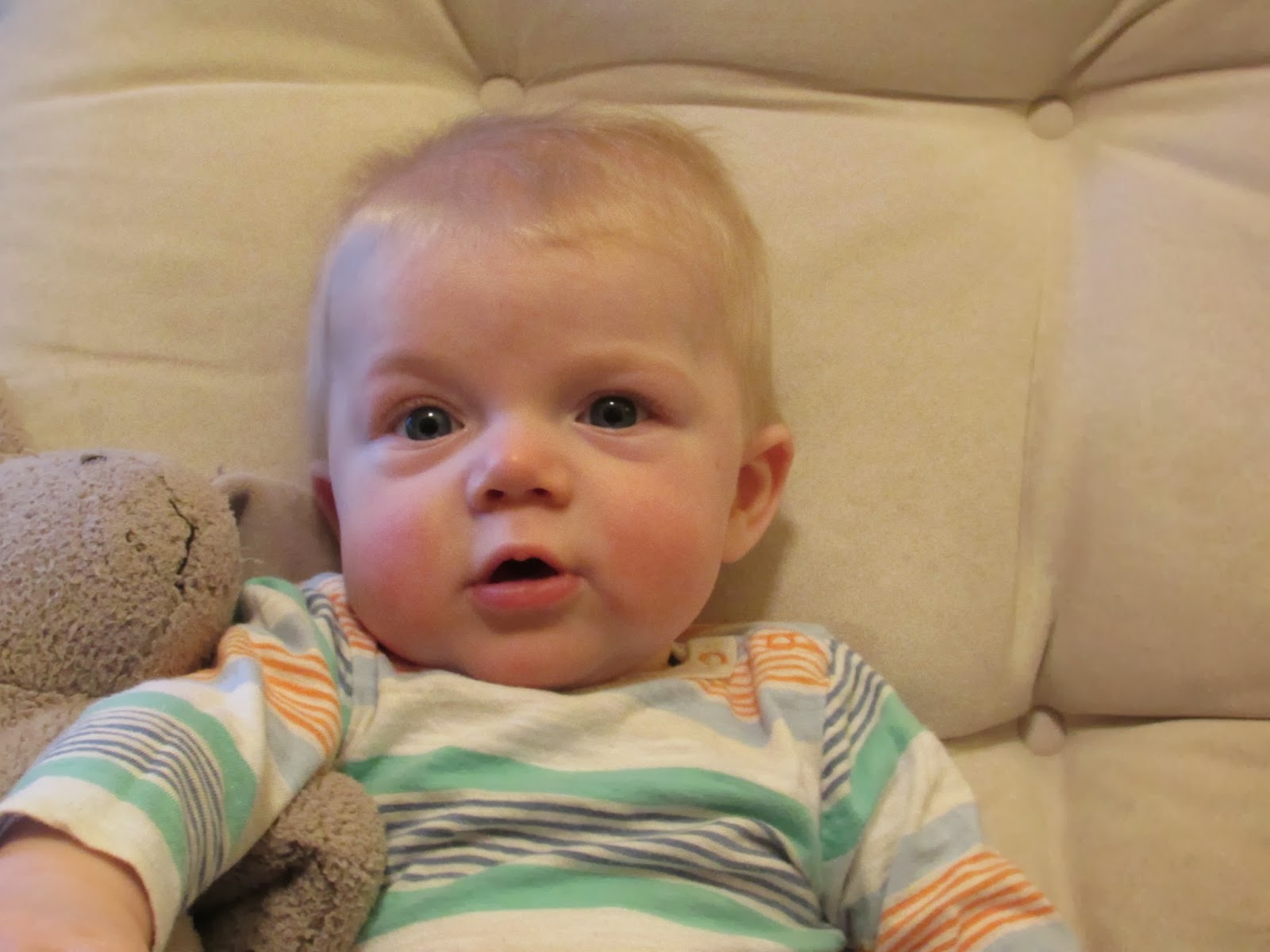 This month also brought lot’s of new sounds and babbling including “mmmm”-but I haven’t heard “mamama” recently.