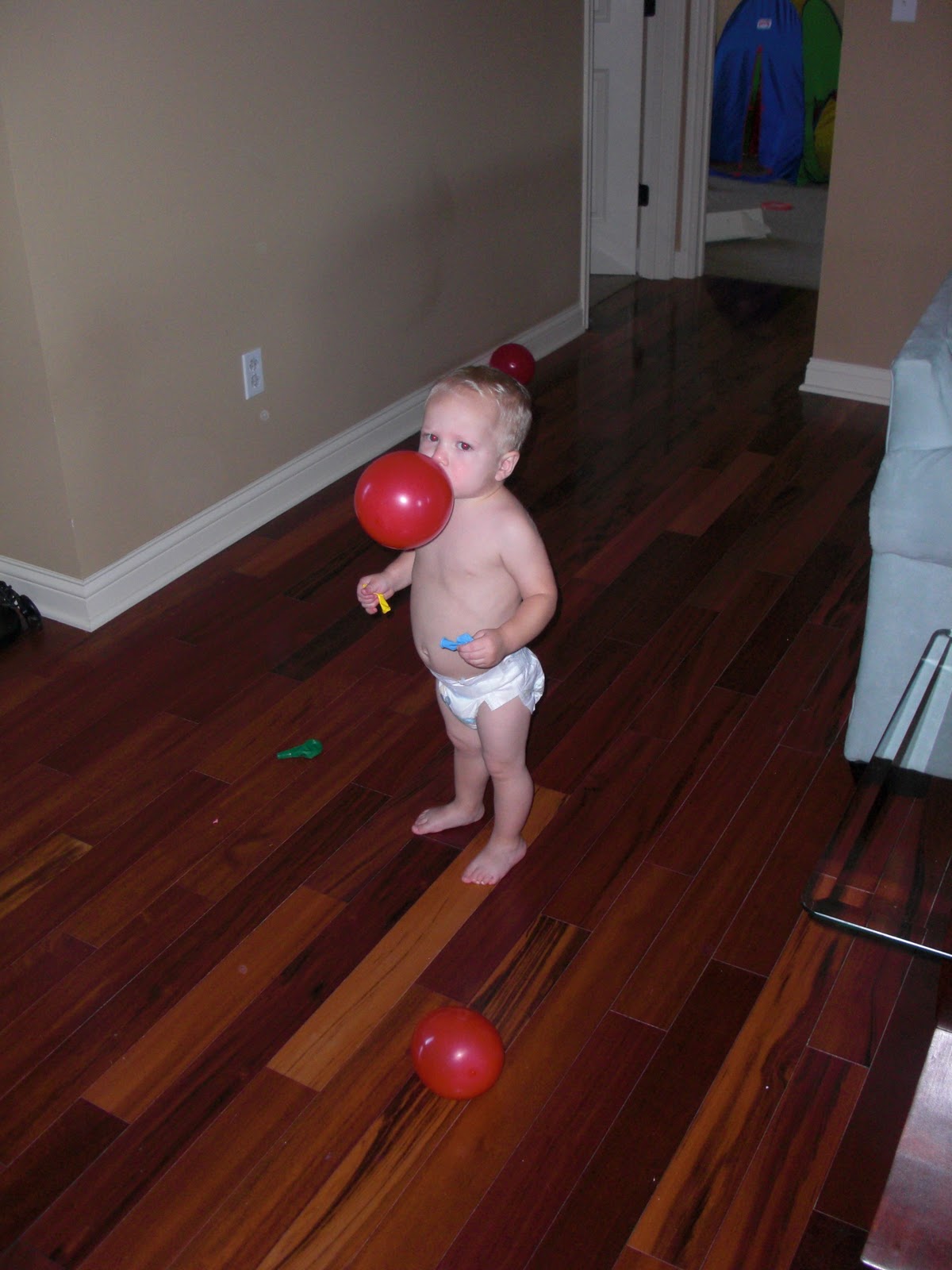 We also blew up some balloons which provided at least a good hour’s worth of entertainment. Ben thought it was hysterical when we blew up the balloon and let it go. And yes, I know balloons are dangerous and kids can swallow them, but we were right there with him the whole time.
