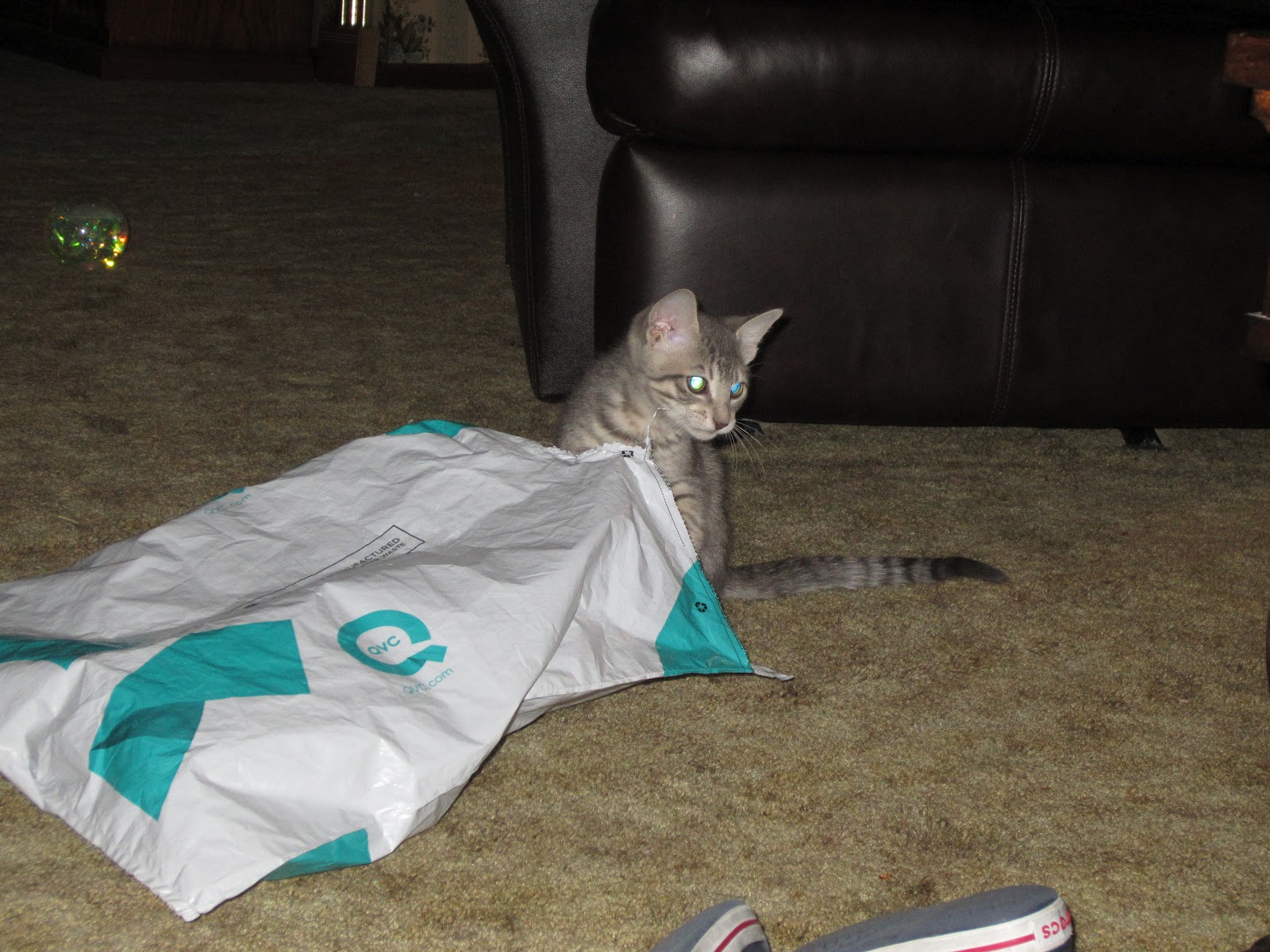 Sunday night we visited J’s grandma. It was the first time being at her house since J’s grandpa had passed away and we definitely missed having him there. To keep herself company, Gigi got a little kitty, Sweet Pea. The jury is still out about whether Sweet Pea is a girl or boy.