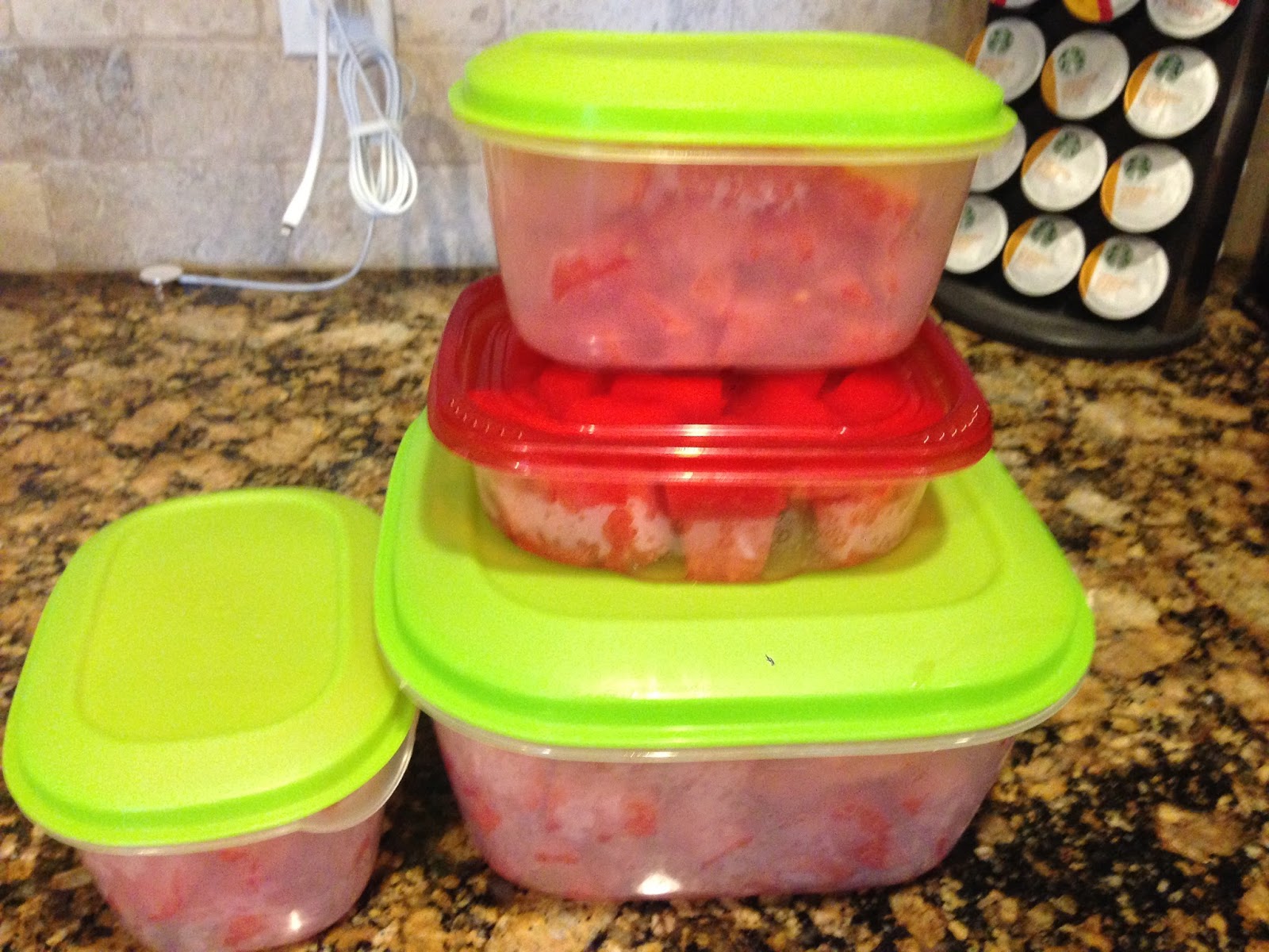 I cut up this watermelon I got at the store and I always forget just how much watermelon there actually is. These tupperware were full and I still had a 1/4 of a watermelon left. Any great recipes you’ve made with this?