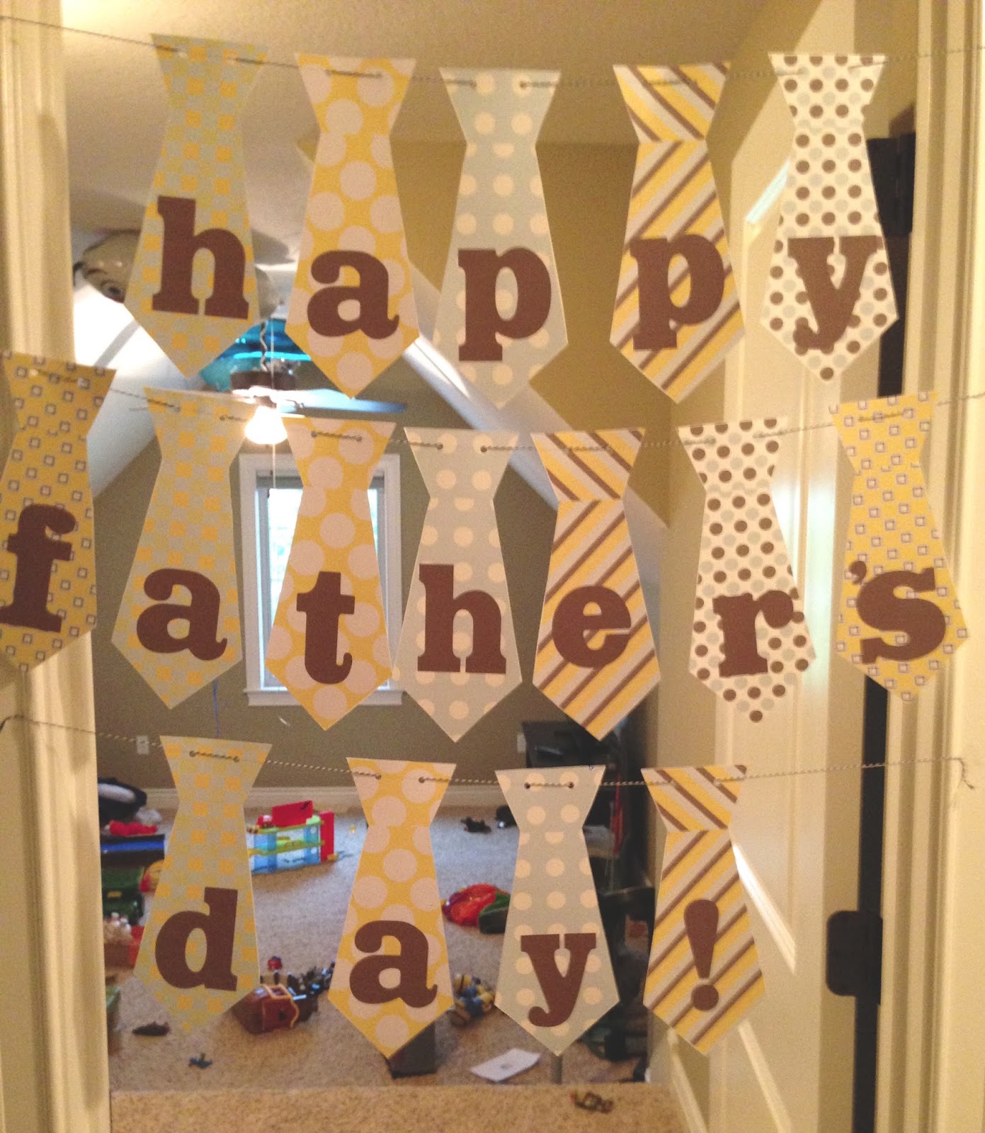 here and hung it on the playroom door where the boys insisted daddy open his presents. We got daddy some new drill bits that he had been wanting, a gift card, and some adorable handmade things the boys made at school.