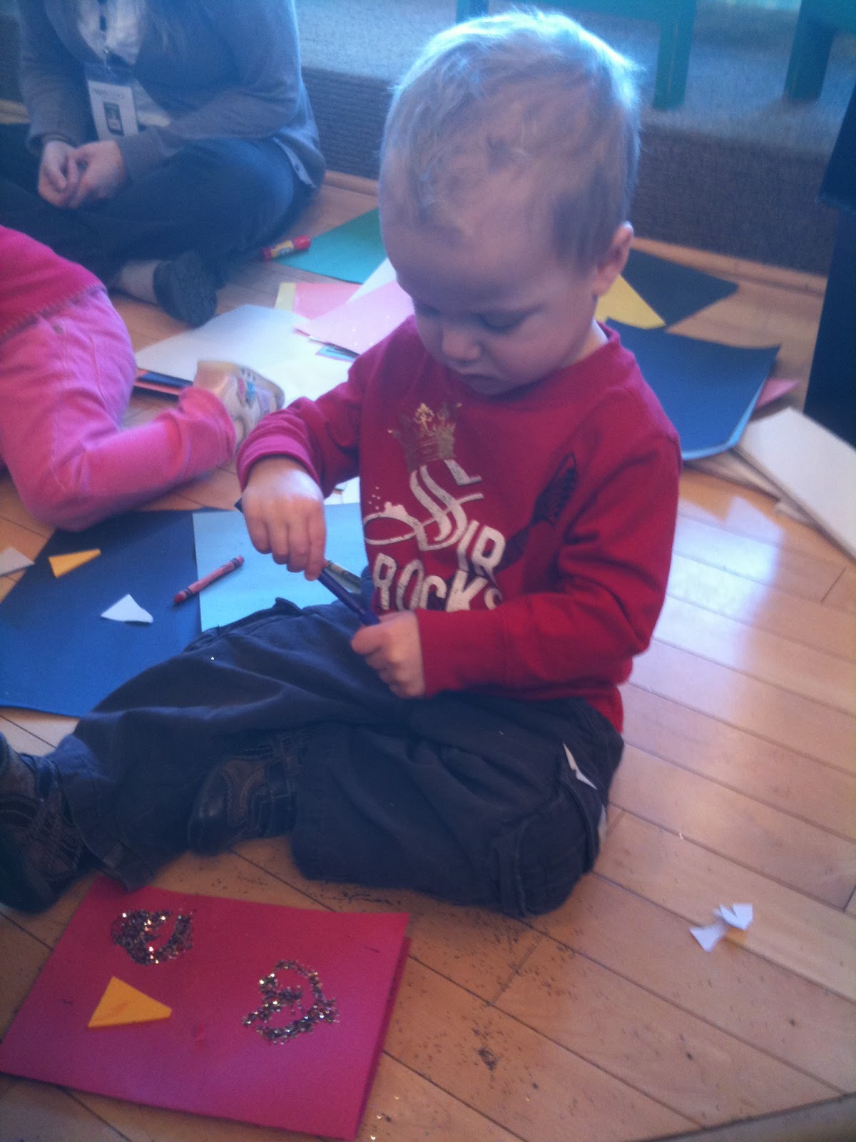 The next morning I took Ben to Barnes and Noble for story time which of course was Valentine’s Day themed. He listened to a few stories, made a card for daddy, and got a special little treat.