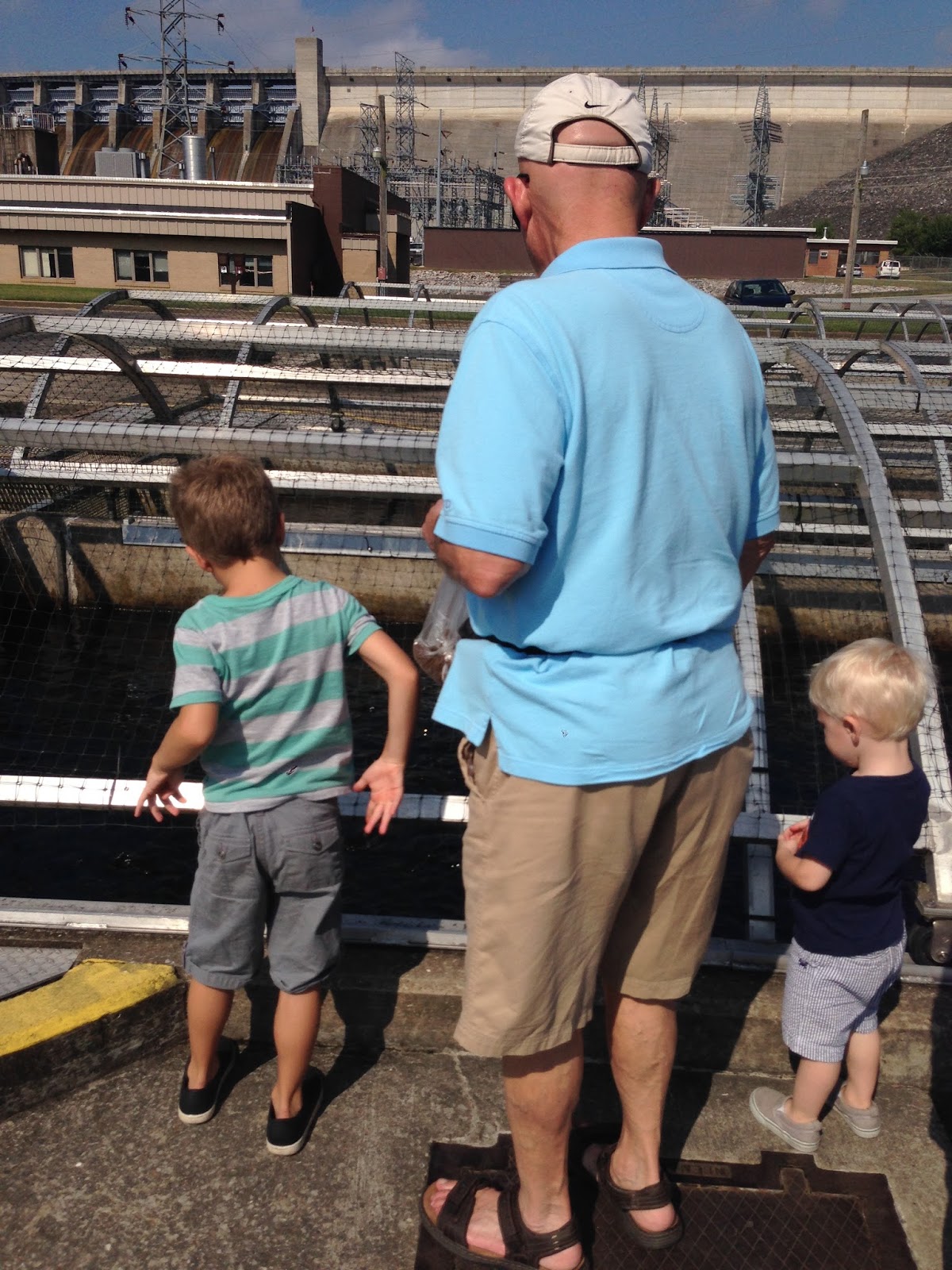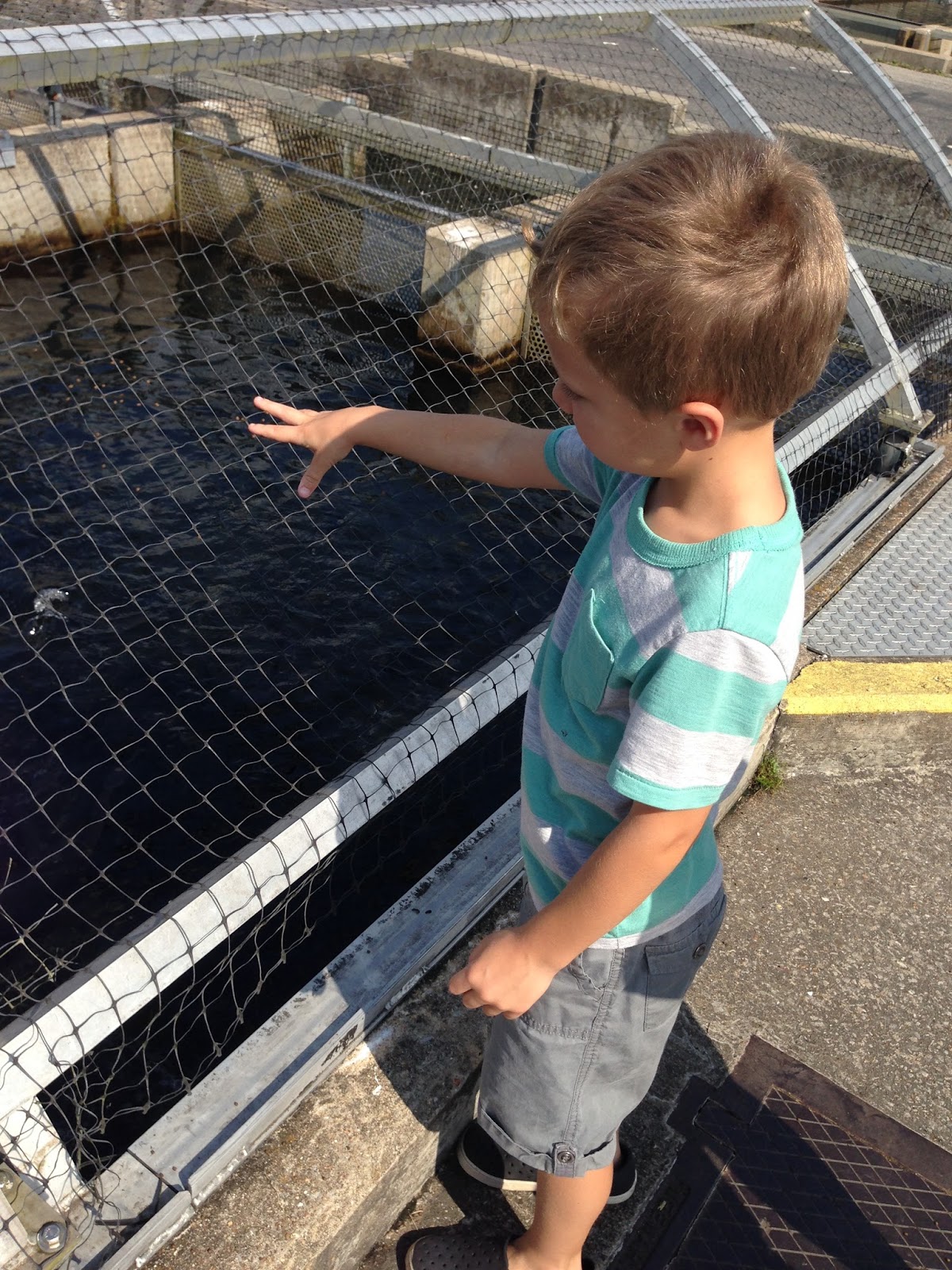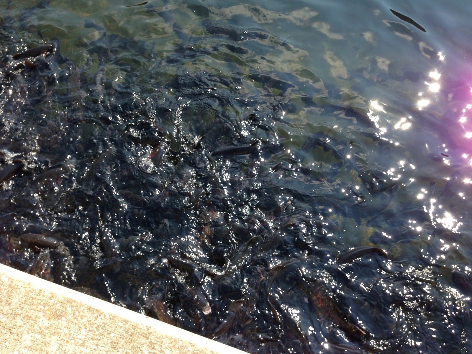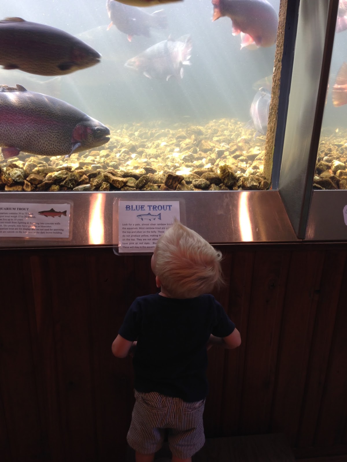 Our sugar high gave us just the energy we needed to check out of the hotel and head to the fish hatchery to feed the thousands of trout. Jack didn’t really love having to give fish “food” and not being able to eat it himself-although he sure tried…several times.