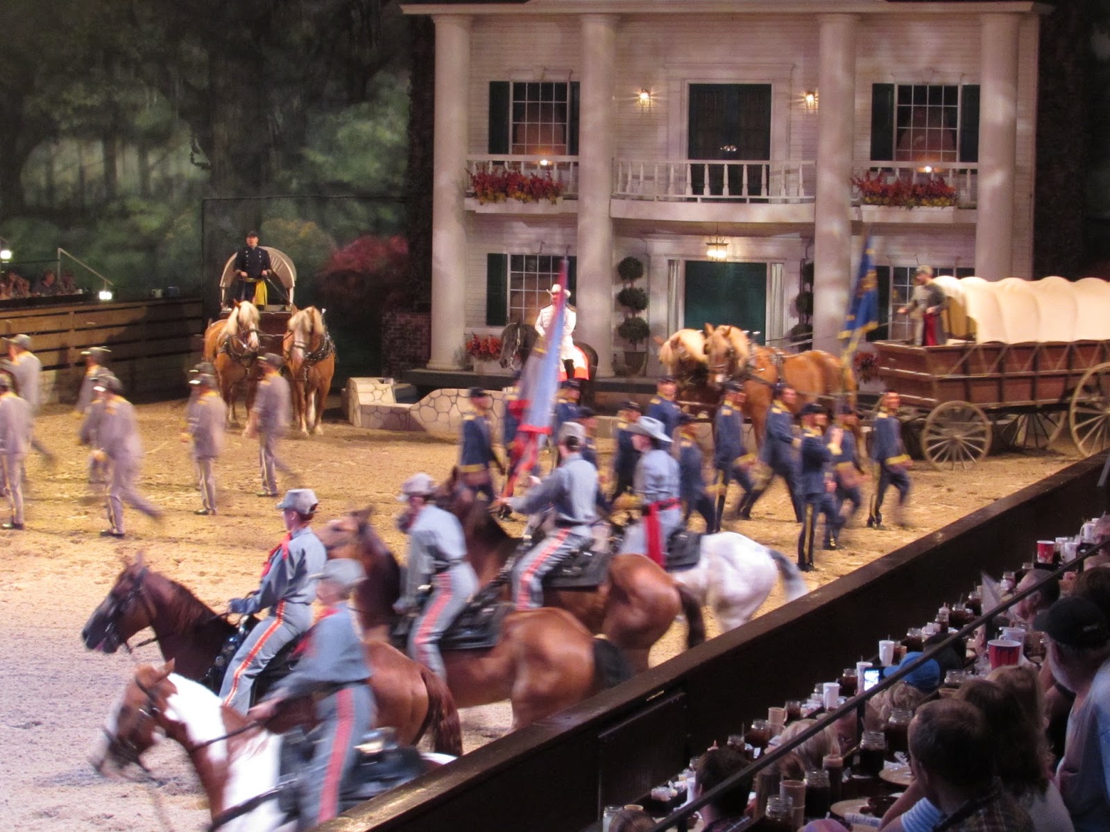 Dixie Stampede. From their website: “Dixie Stampede is an extraordinary dinner show with thirty-two magnificent horses and a cast of top-notch riders. They will thrill you with daring feats of trick riding and competition, pitting North against South in a friendly and fun rivalry. You will enjoy a barrel full of music, dancing, special effects and family friendly comedy along the way.”