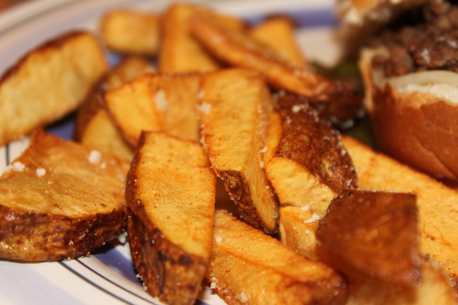 J said this was one of his favorite meals I have ever made. The fries? He scoured the kitchen for more. I will never eat store bought fries again. My sister made similar fries to go with the French Dip sandwich she made last weekend that I posted about above.