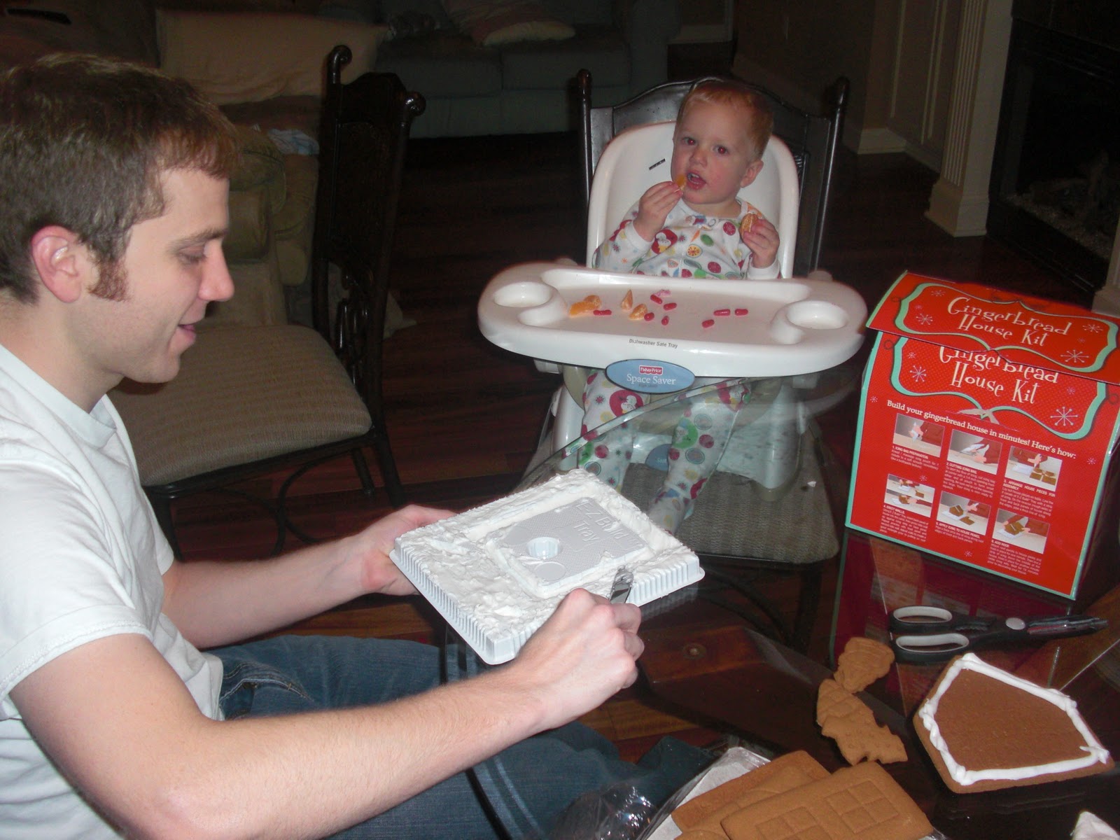 After convincing him that the gingerbread men weren’t actually real and that there would be plenty of candy to share, we let Ben sit at the big table with us. That soon turned in to Ben eating half the candy and trying to lick the big gingerbread pieces. Needless to say he was placed in his high chair. With candy of course. And an orange. It’s all about balance.