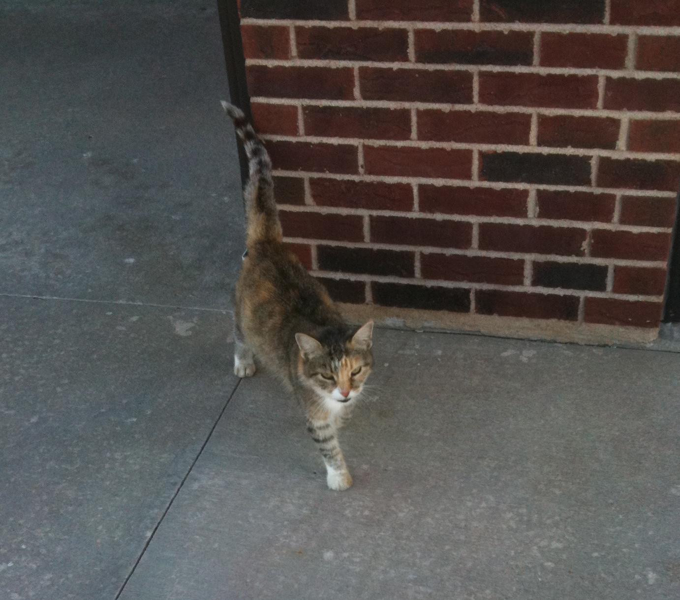 We first met Snickers at the beginning of Summer when it came to our house looking for food. The cat was so skinny and had the sweetest little meow that we felt so sorry for it and fed it. As we were feeding it we noticed the neighbors up the road walking towards us. They introduced us to Snickers and told us they also fed the cat, whose owners sadly left him/her to fend for itself. We’re still not sure whether Snickers is a boy or girl so we randomly refer to it as both.